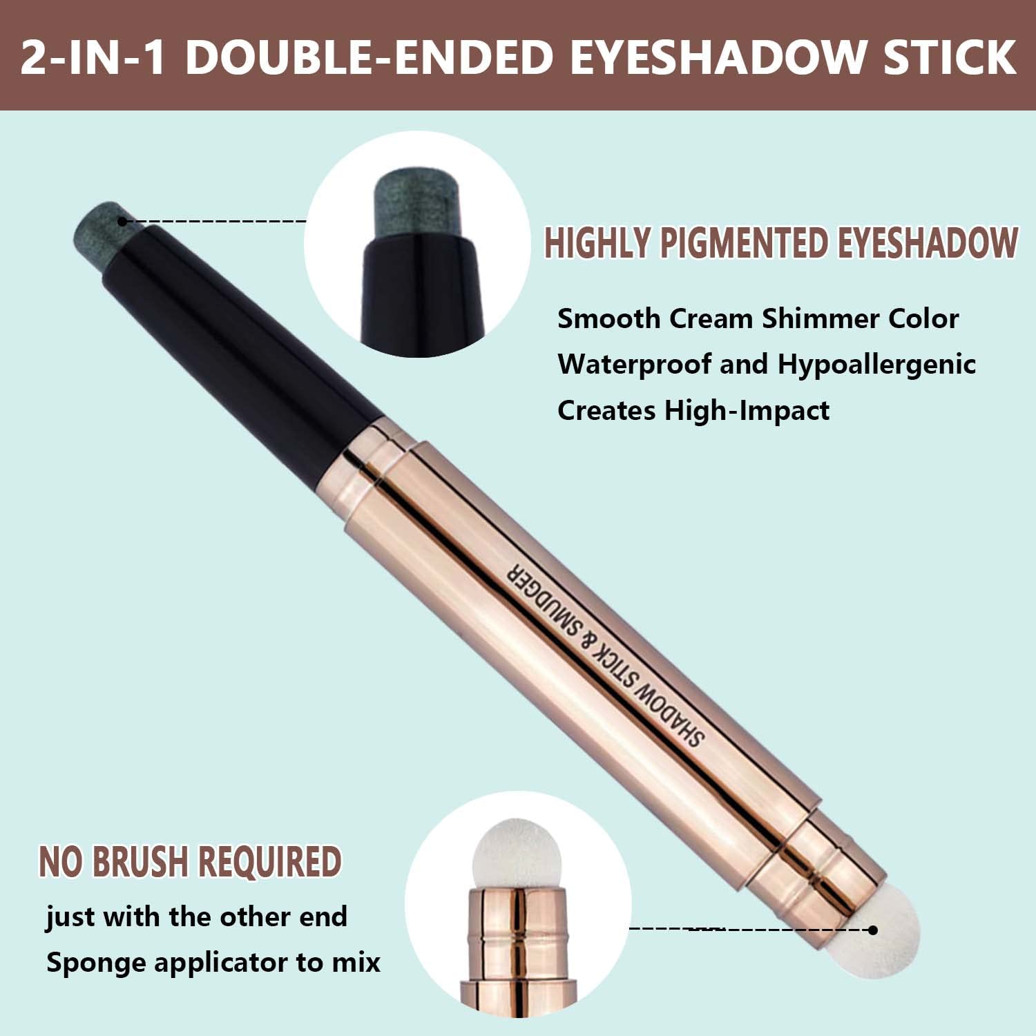 - WATERPROOF AND HYPOALLERGENIC : This waterproof and hypoallergenic formula eyeshadow stick, cream-to-powder eyeshadow stick glides effortlessly across lids, then dries to a waterproof, anti-wrinkle powder finish to contour, highlight and create multi-dimensional eye makeup