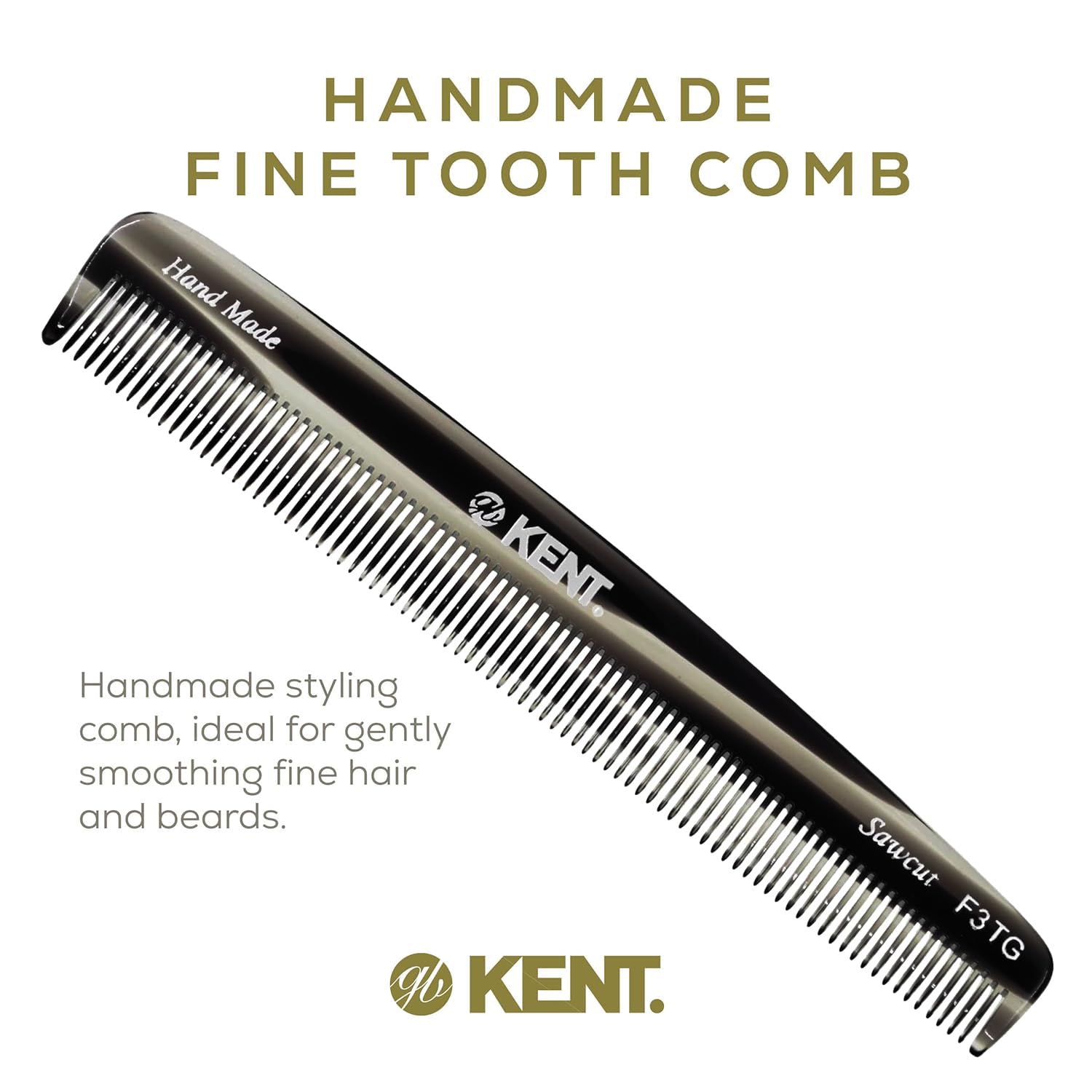 Kent F3T Black Graphite Fine Tooth Comb - Hair Parting and Straightening Comb for Men's & Women's Dandruff Remover, Saw Cut and Hand Polished Made in England