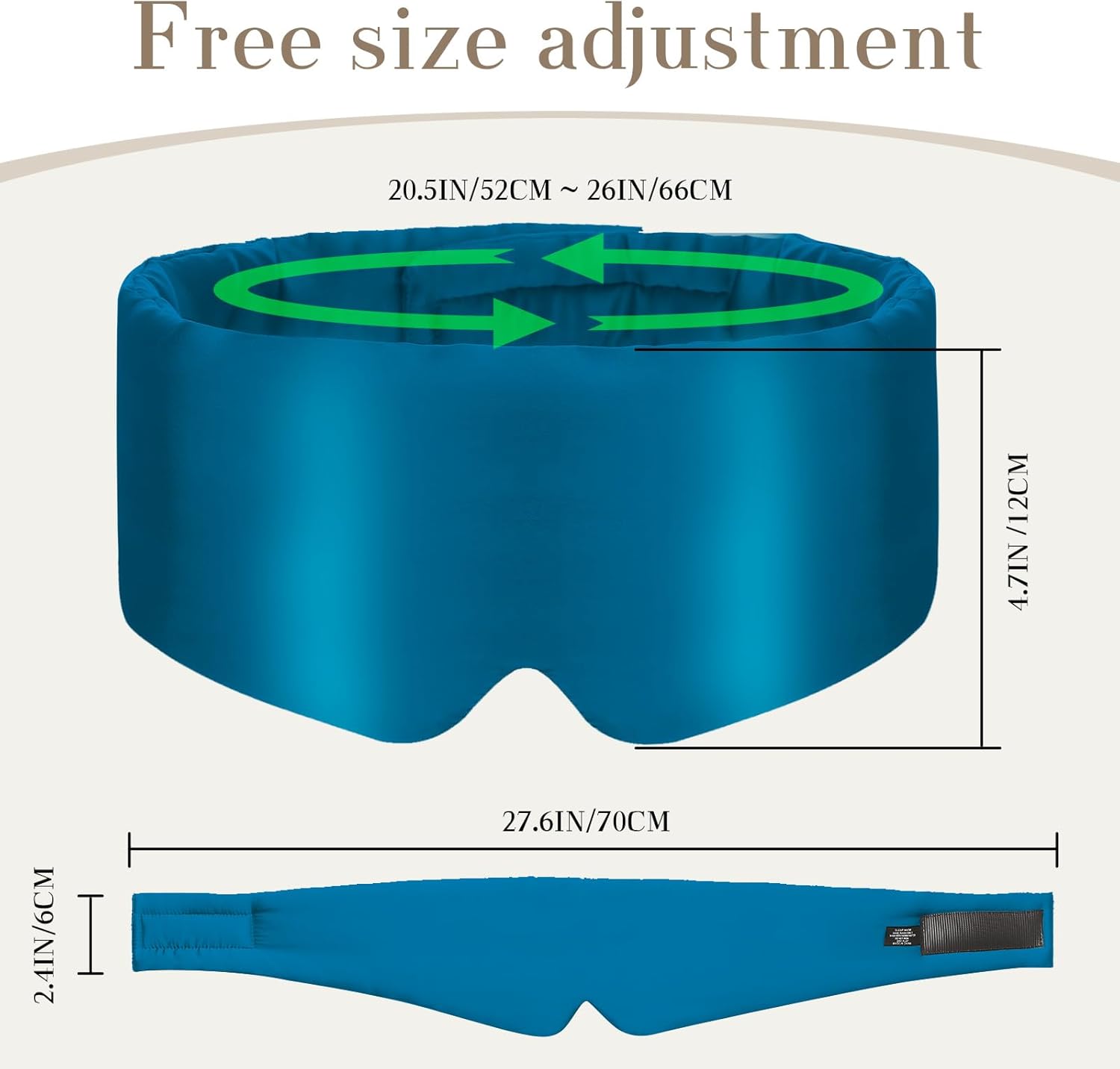 100% Mulberry Silk Sleep Mask Eye Mask for Women Man with Adjustable Band, for Side Sleeper Blackout Sleep Mask for Travel Rest and Office Large Size (Blue)