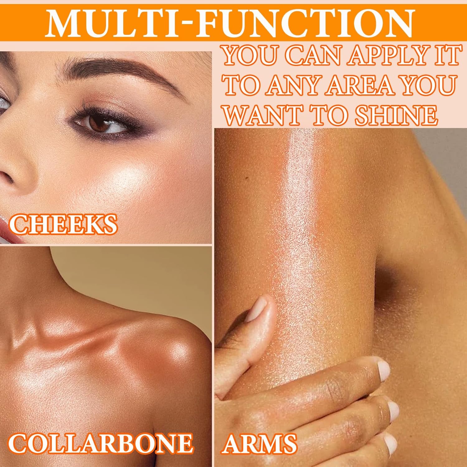 - ✨【Applicable to Many Parts of the Body】Liquid illuminator can be used on arms, collarbones, shoulders, thighs and many other parts of the body to add luster and give you a radiant glow.