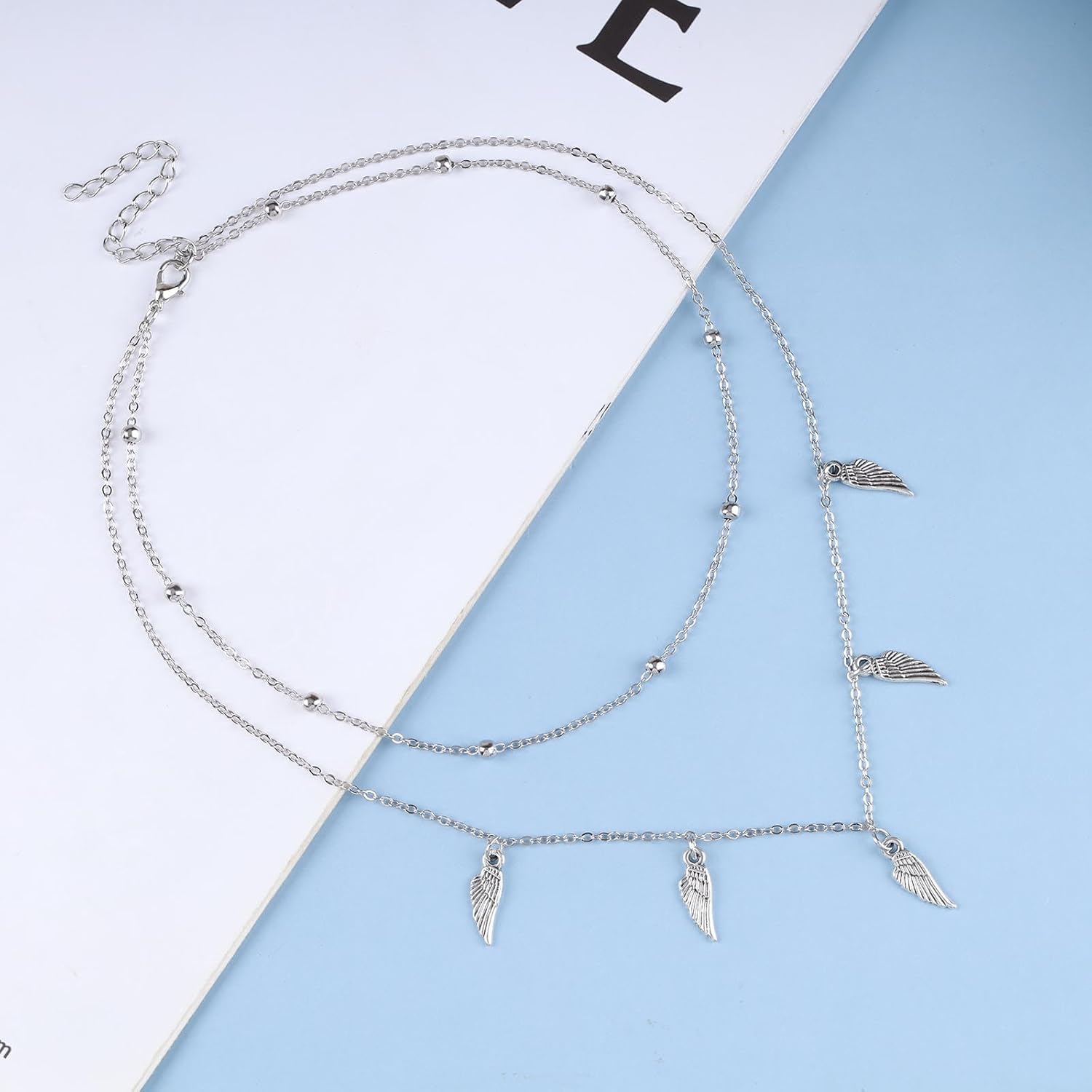 Vintage Layered Wing Dangle Necklace Angel Wing Pendant Necklace Tiny Wing Choker Necklace Silver Angel Wing Necklace Jewelry for Women