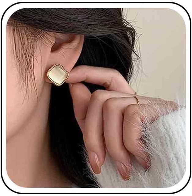 Vintage Square Opal Earrings Opal Square Stud Earrings Moonstone Stud Earrings Geometric Square Earrings Jewelry for Women