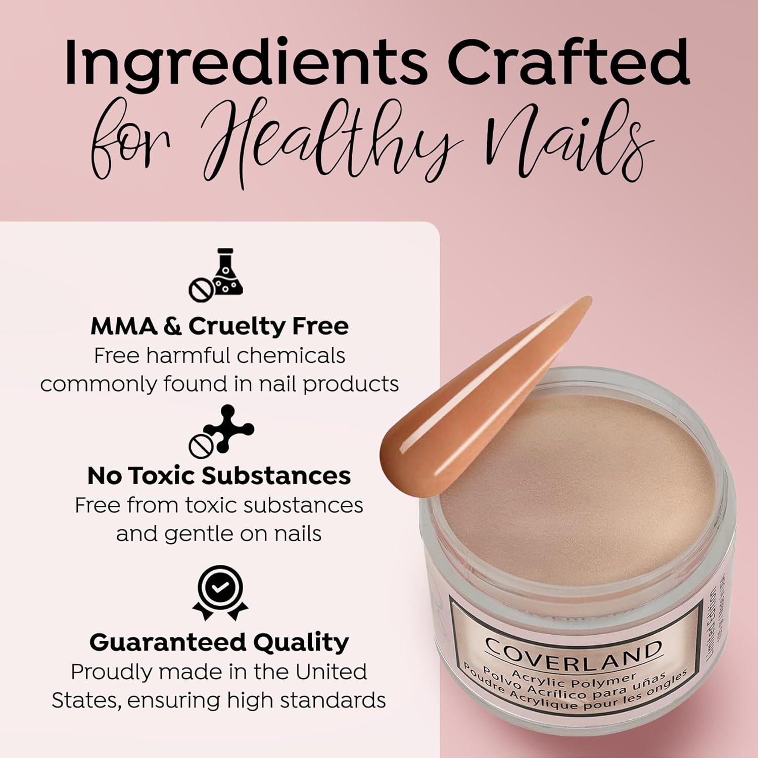 - βοΈππππ ππππππππ πππππ: The flexibility and adhesion properties of Coverland colored acrylic nail powder make it easy to shape nails with precision, and offers nice control for professionals who prefer to work with a polymerization rate of moderate to fast.