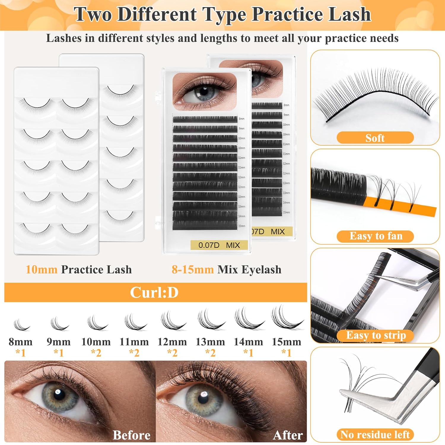 - Complete Eyelash Extension Practice Kit with Everything: Lash extension kit for beginners including lash mannequin head, USB fan, eyelash glue(shake before use) lash glue remover (For mannequin head only),0.07D mix eyelash, practice eyelash, eyelash tweezers, disposable eyelash plastic wrap, eyelash extension glue wipes, tweezer cleanser, glue sticker pads, storage bag, makeup remover pad, eyelash extension jade stone, eyelashes stand holder plate, eyelash brushes, micro swab