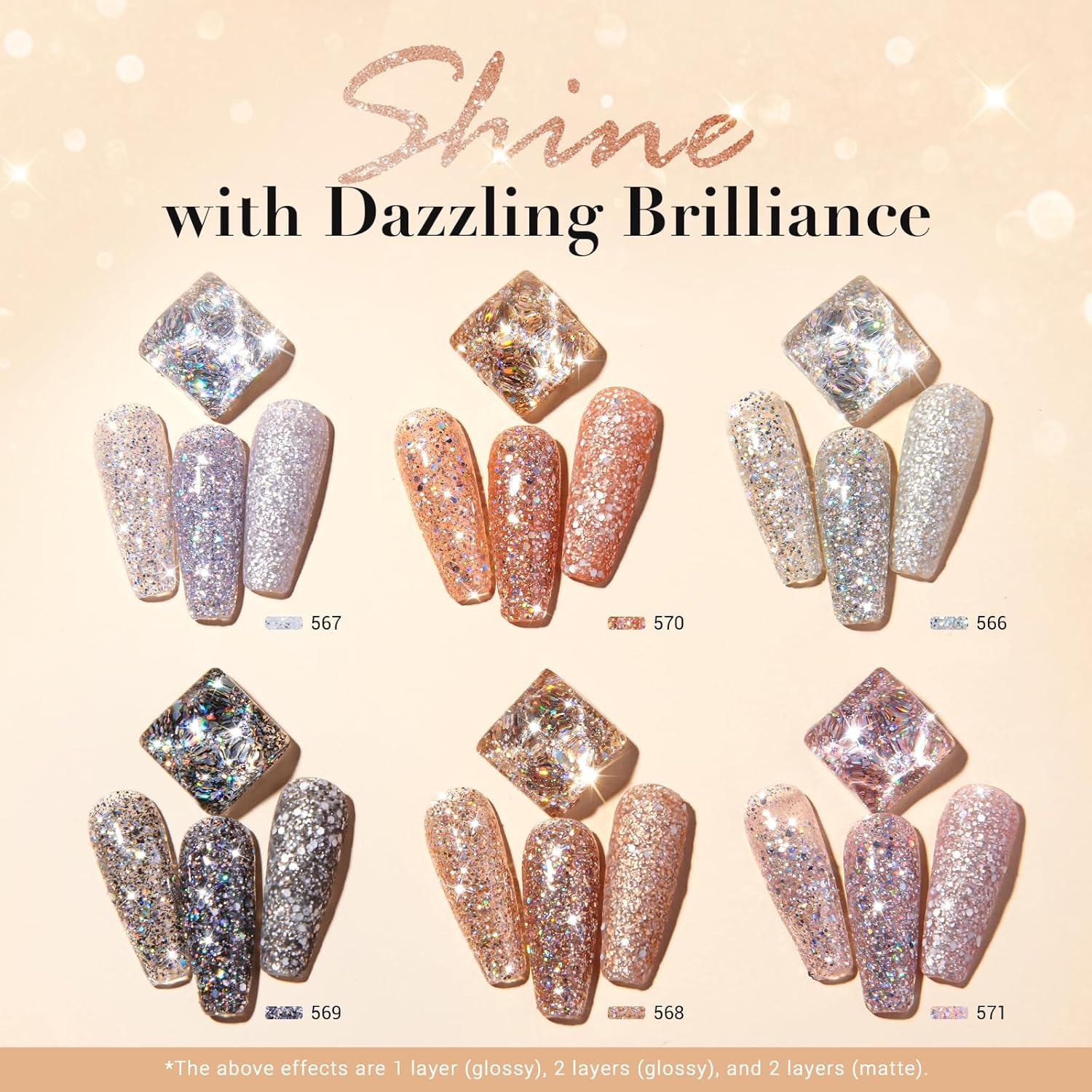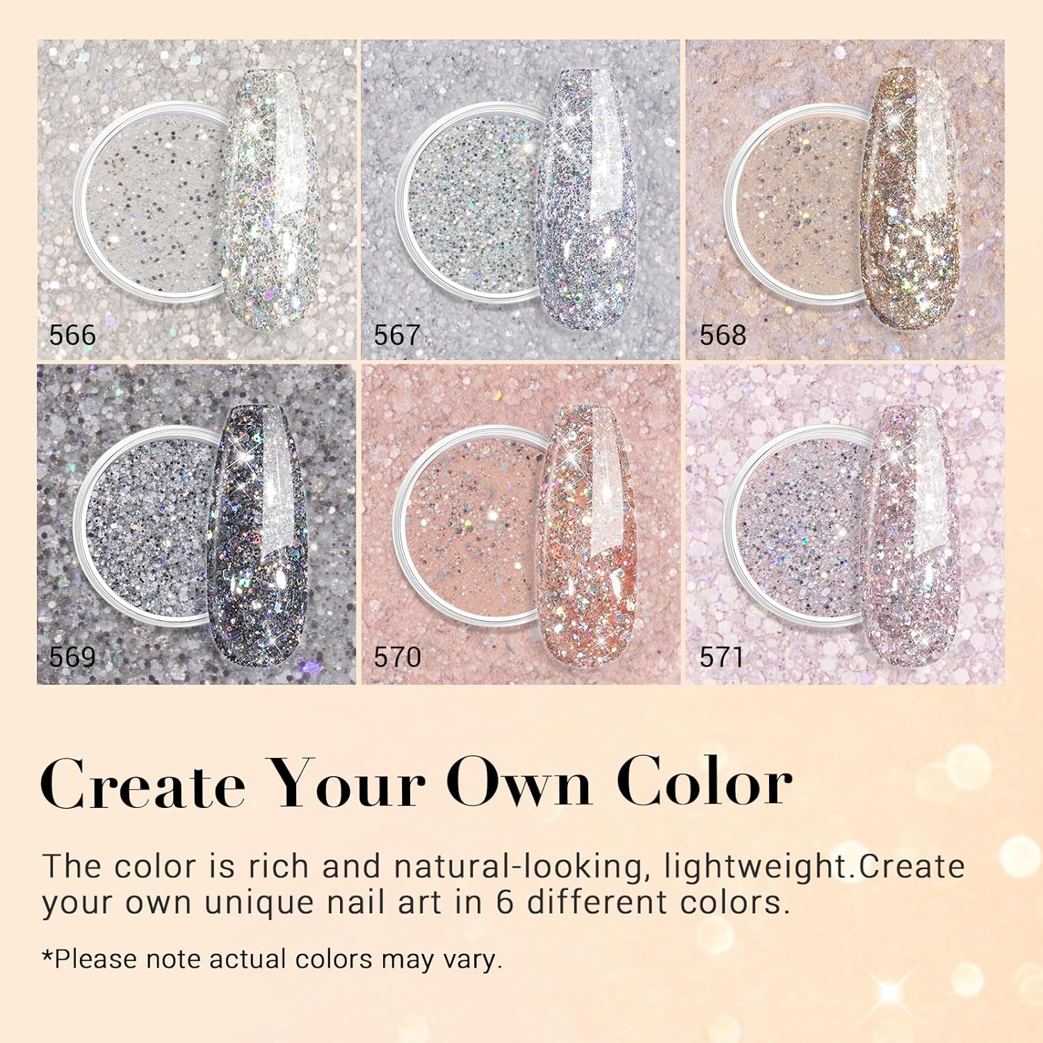 - Dazzling Dip Powder Set: With this premium dip powder set covering 6 different shiny colors(sparkle champagne, silver, pink, black, golden yellow, 10 g/box), your nails will look brilliant shiny finish, lightweight, and more attractive. No matter whether you prefer a mature, elegant, or retro style, the set will meet your needs on all occasions(daily routine life, parties, travel, weddings, etc) all year round