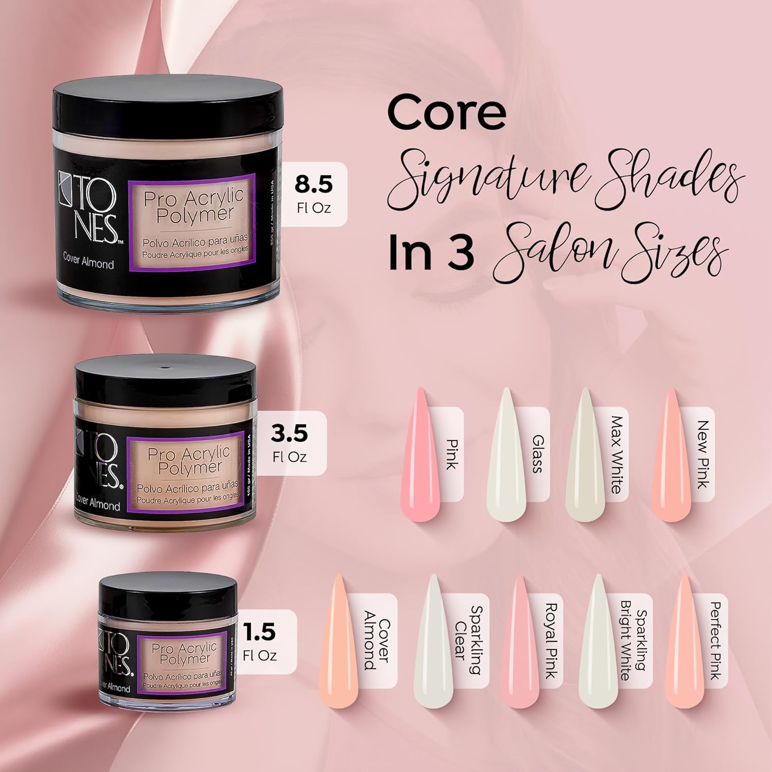 Tones Pro Acrylic Nail Powder, Cover Almond (Soft Nude Beige), (8.5 Fl Oz) - Long-Lasting & Non-Yellowing Polymer for Salon Quality Nail Extensions & 3D Art