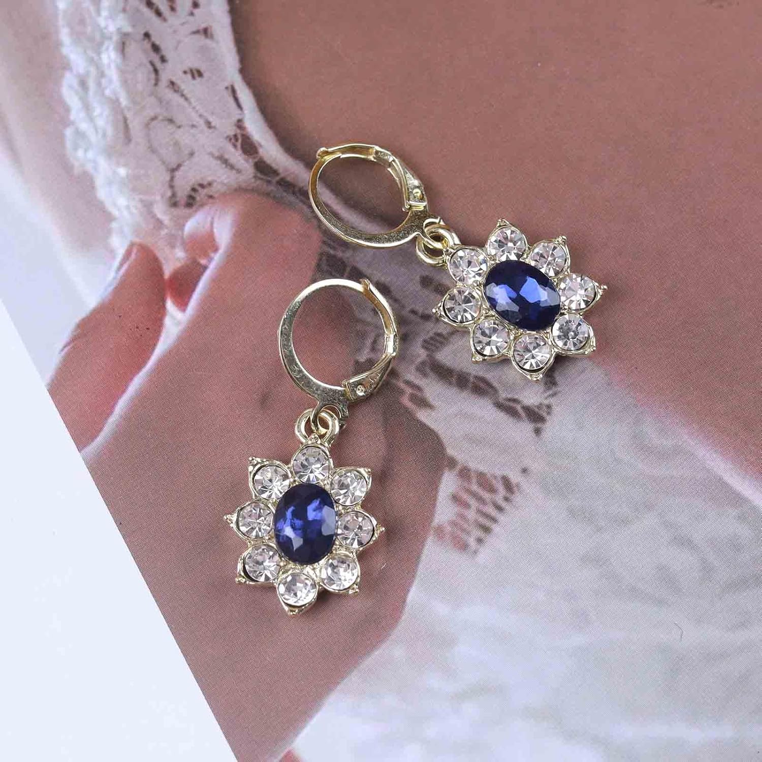 Vintage Crystal Flower Earrings Sapphire Drop Earrings Blue Oval Gem Earrings Gold Rhinestone Huggie Hoop Earrings Jewelry for Women