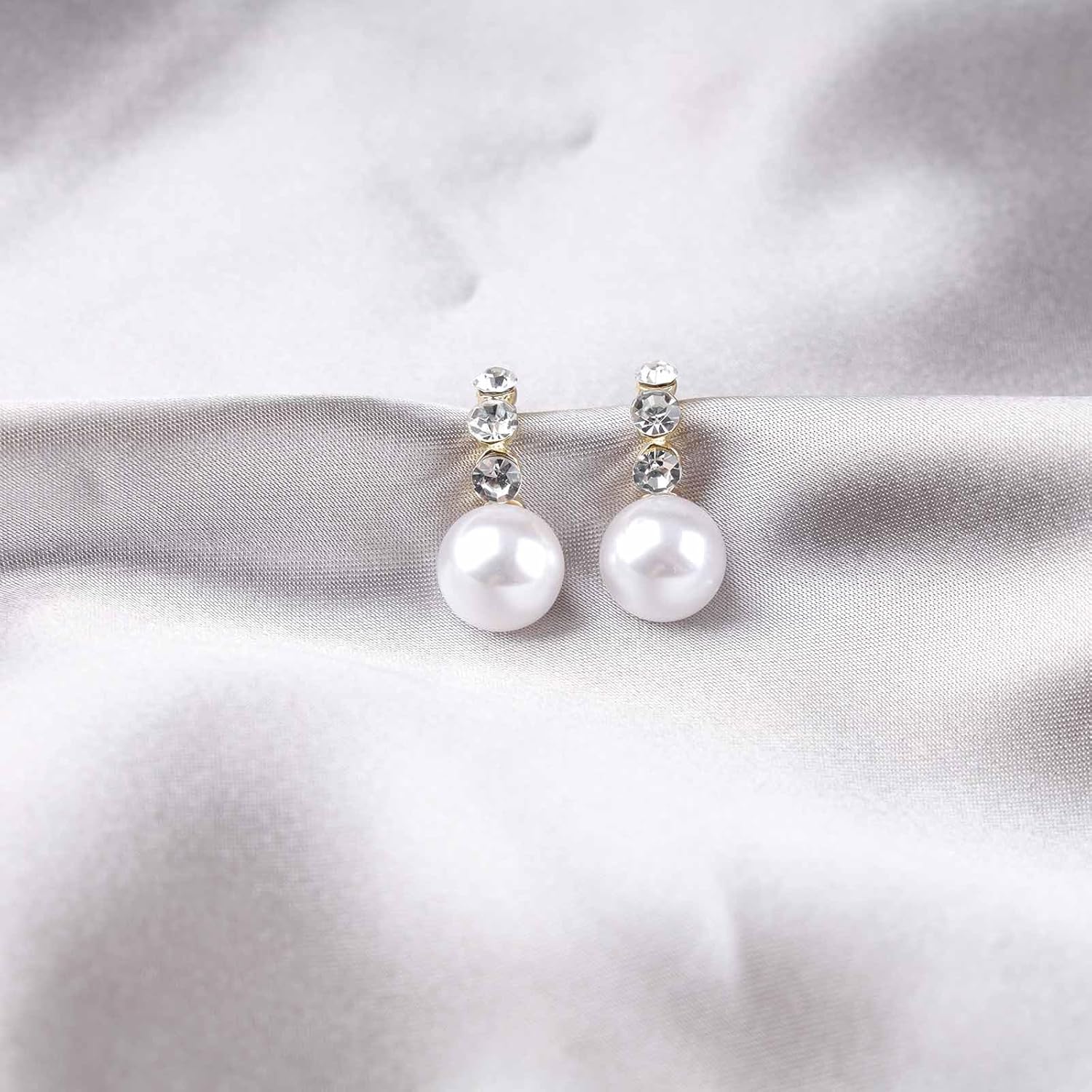 Vintage Rhinestone Pearl Drop Earrings Gold Pearl Dangle Earrings Crystal Stud Earrings Sparkly Cz Pearl Earrings Jewelry for Women