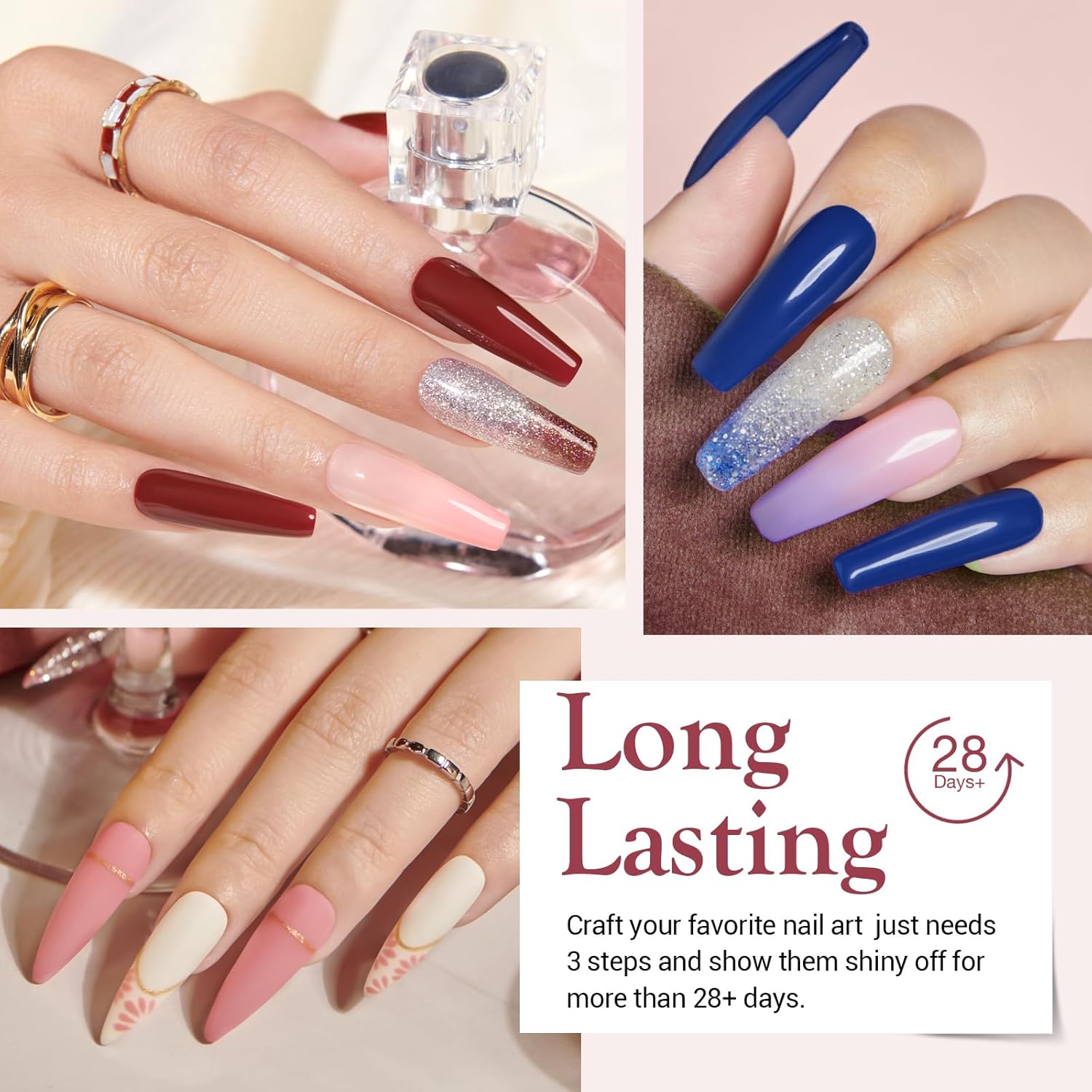 - 【Superior Quality & Long Lasting】 AZUREBEAUTY nail dip powder kit is long-lasting and anti-chipping, anti-peel off. The color is full and natural-looking, light, and has an impeccable shine finish. It can keep the nail art gorgeous and shiny for more than about 28 days with proper application. This makes it the first choice for busy people. (REMINDER: The affection of dip powder may show differently in different people, 2~3 base coats while using will be the best.)