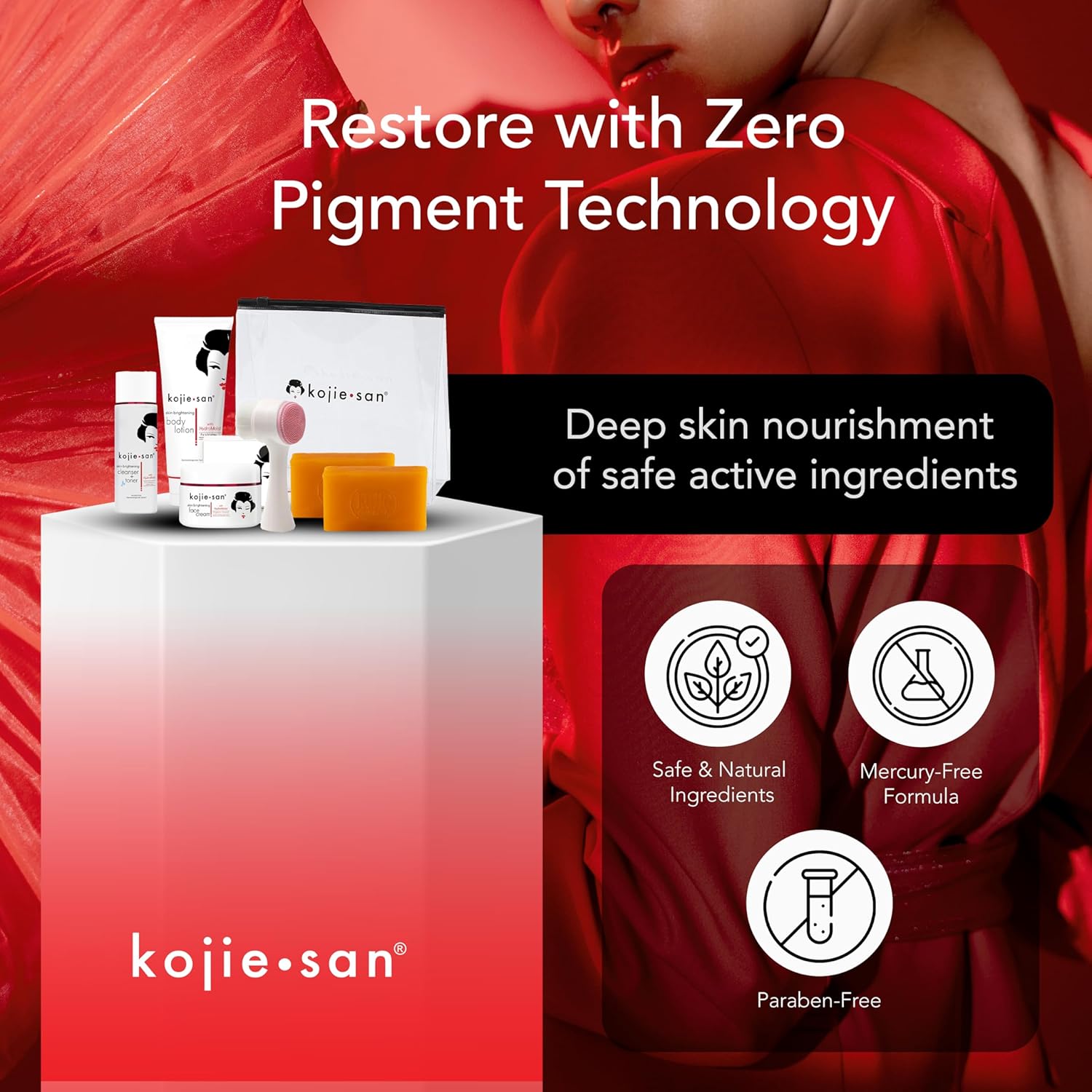 Kojie San Face & Body Shower Set - The Original Kojic Acid Soap that Reduces Visibility of Dark Spots, Hyperpigmentation, and Other types of Skin Damage – 135g x 2 Bars with Lotion, Cream and Toner
