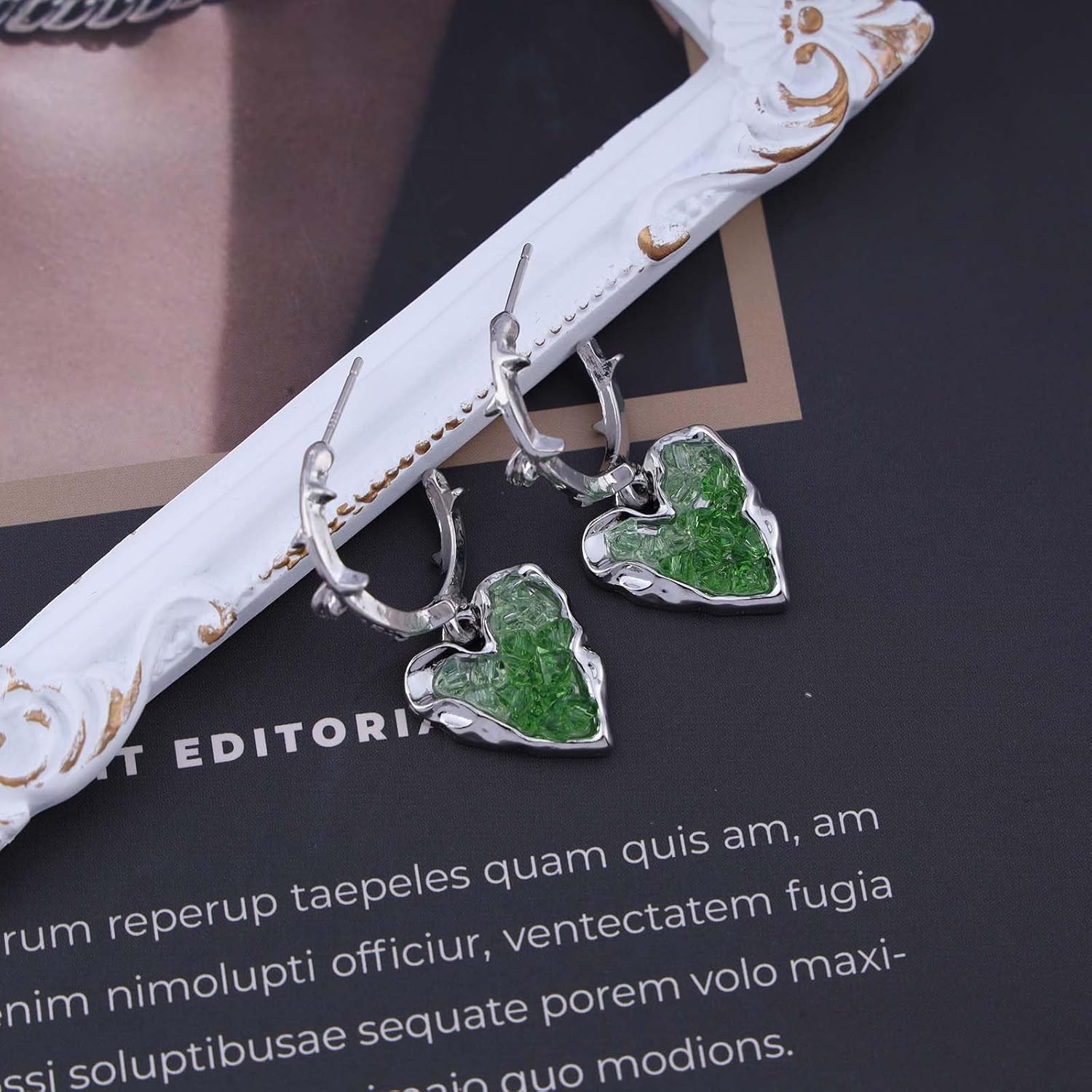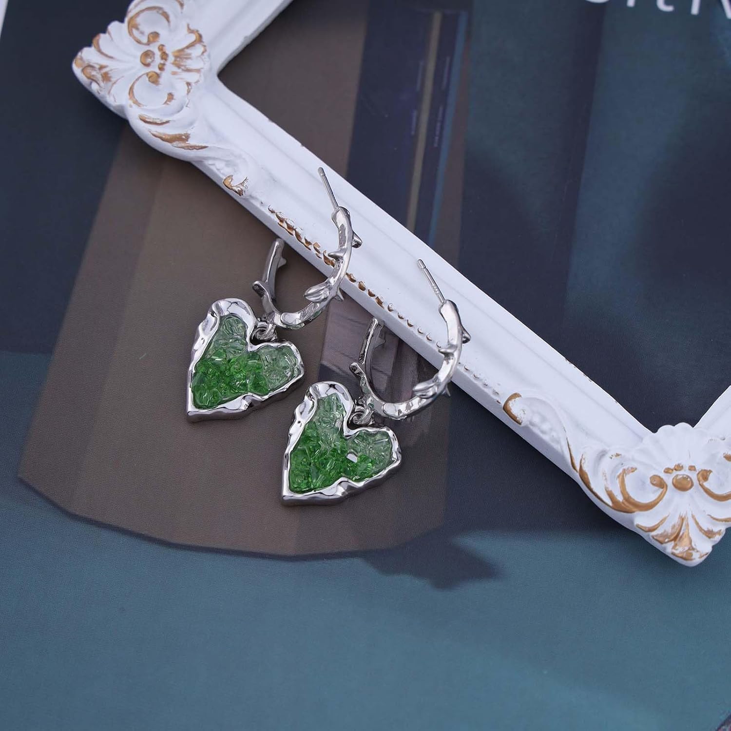 - Emerald heart drop earrings.Item Details:Handmade Item.Size:As Shown.Color:Green.Materials:Quality Alloy/Crystal.Location:Ear.Style:Boho/Vintage.