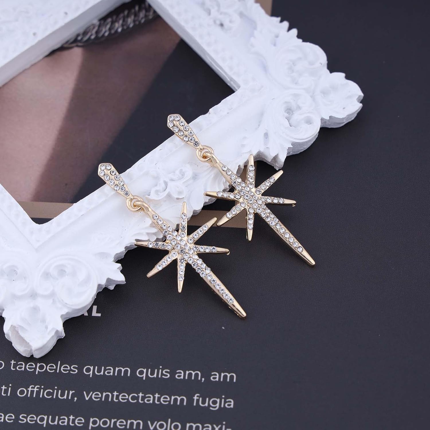 Vintage Crystal Northstar Dangle Earrings Rhinestone Northstar Studs Earrings Gold Cz Star Drop Earrings Sparkly Cz Starburst Earrings Jewelry for Women