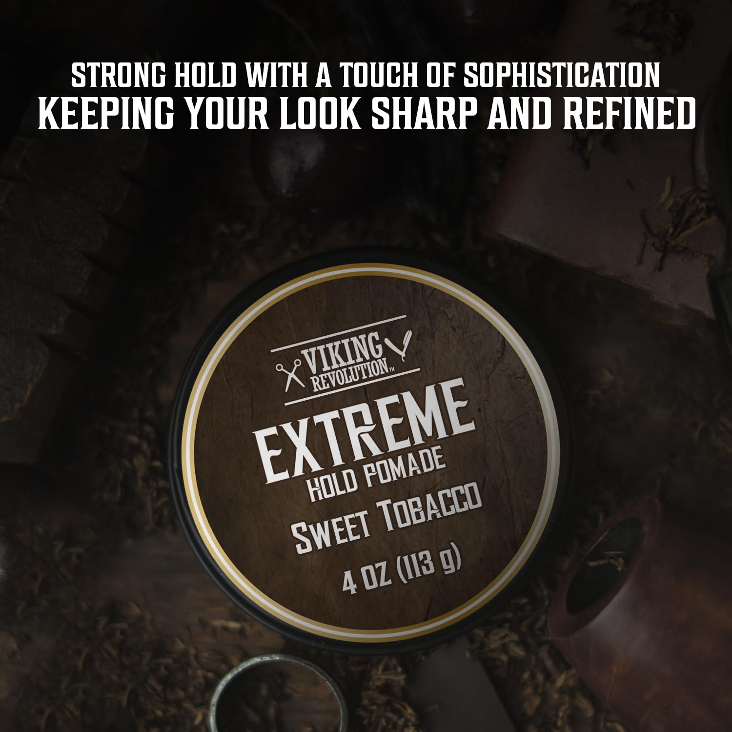 Viking Revolution Sweet Tobacco Hair Pomade for Men - Extreme Hold Water-Based Hair Gel - Extra Firm Strong Hold With High Shine - Men's Hair Cream (4oz)