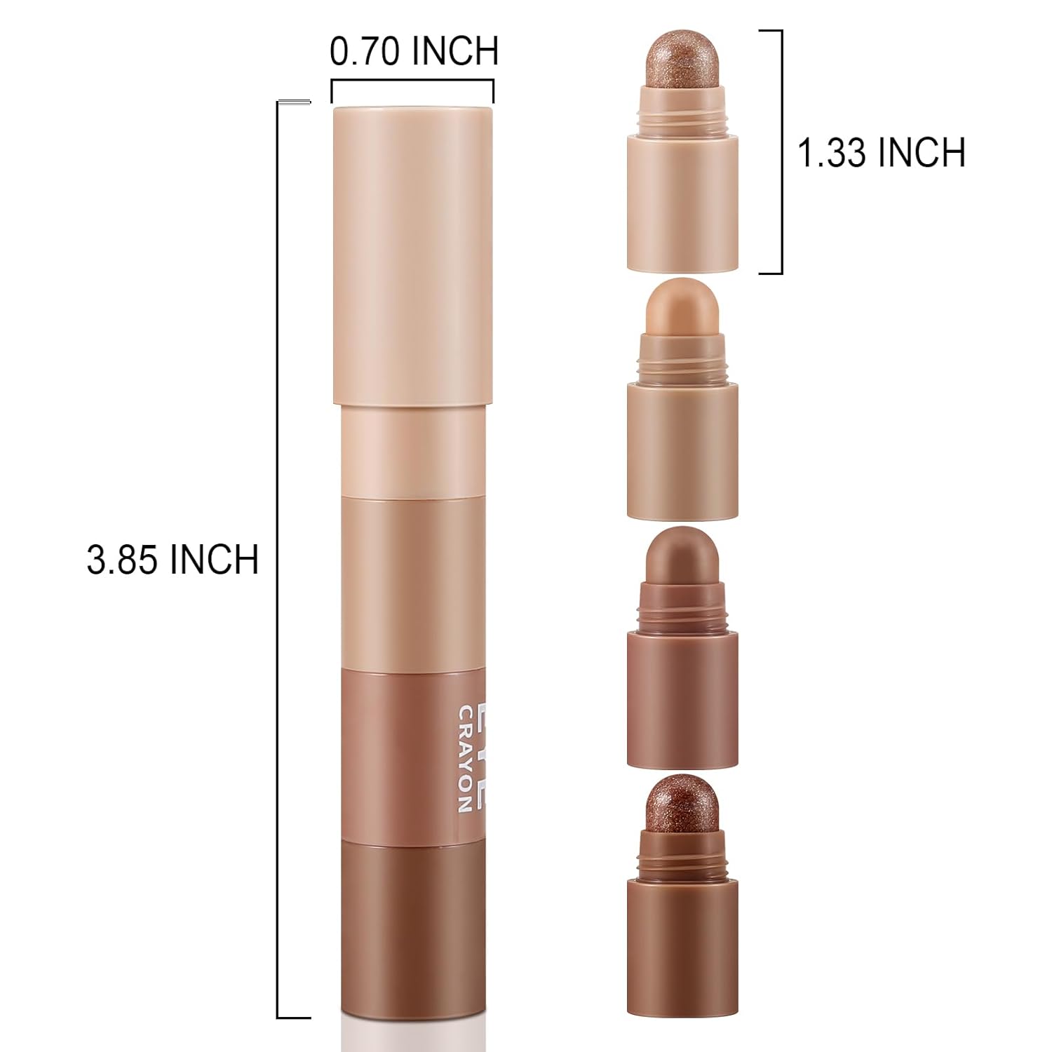 - 4 Colors Eyeshadow Stick: 4 in 1 eyeshdow pen to create a full face look, two mattes and two shimmer can be used individually or mixed, perfect for applying makeup according to your creativity.