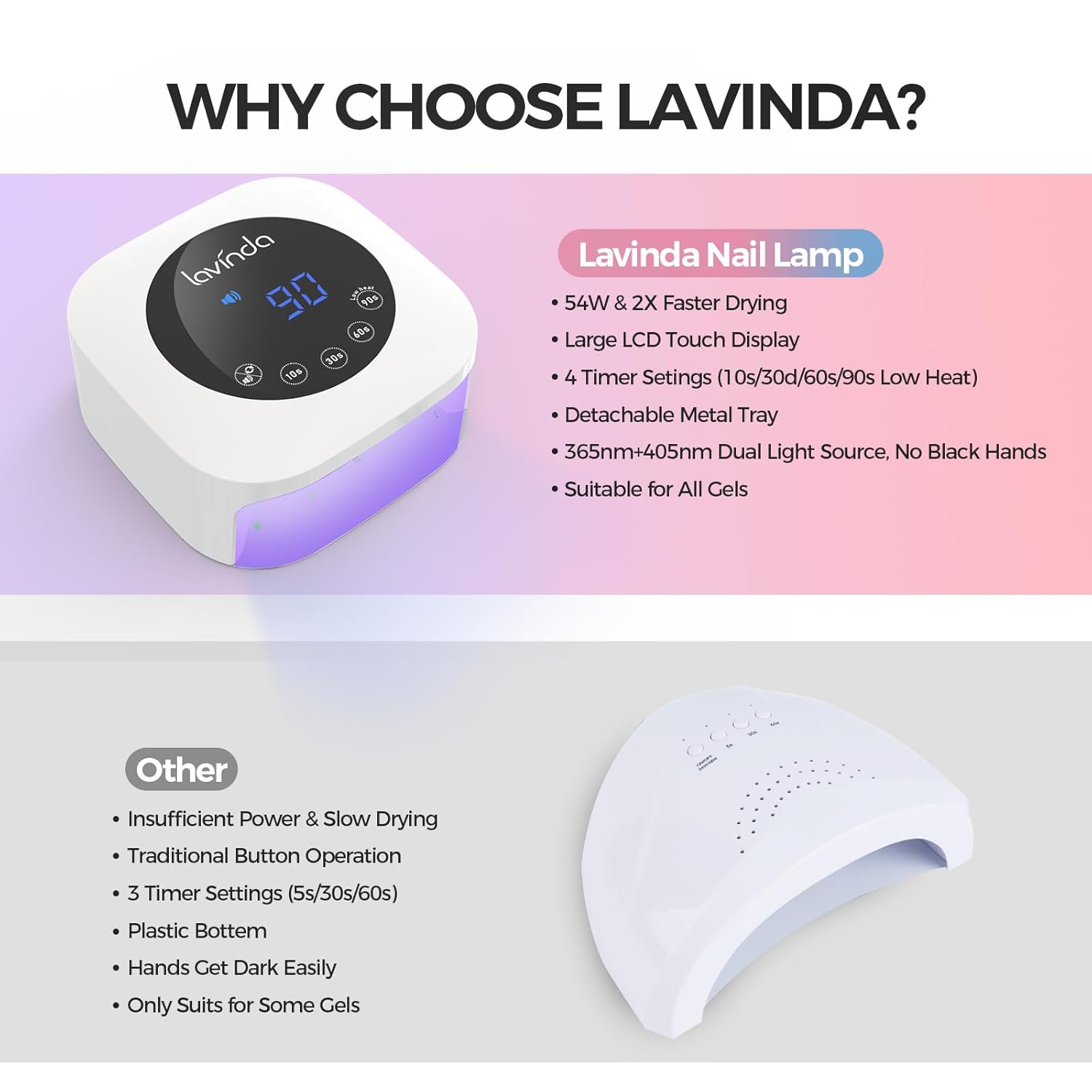 Lavinda UV Light for Nails, 54W LED Nail Lamp for Acrylic Gel Polish Nail with Large LCD Display, Professional UV Nail Light Fast Curing Lamp Nail Dryer with 4 Timers for Women Girl Mom