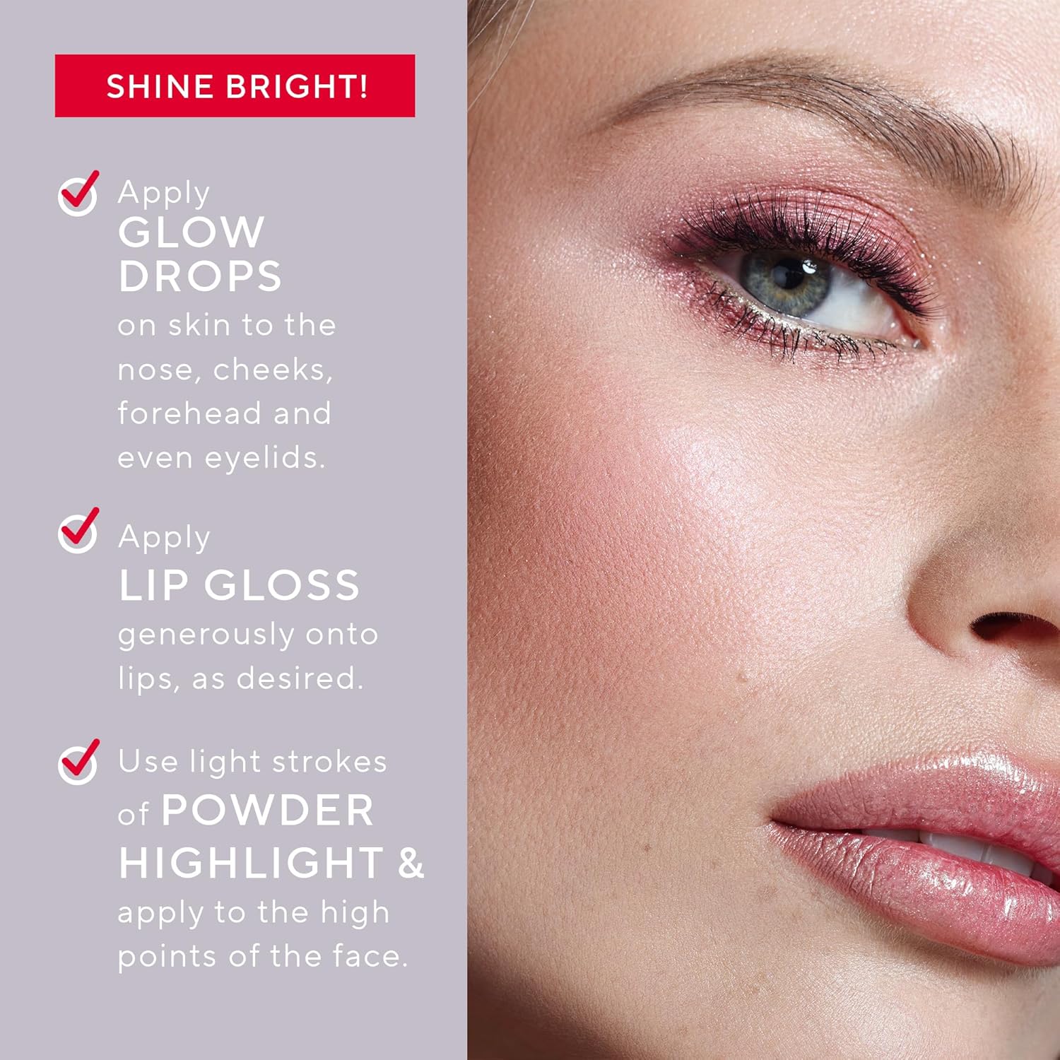 Mirabella 4-Piece Makeup Set for Women & Girls, Illuminizing Holiday Gift Set - Make-Up Set Includes Lip Gloss, Glow Drops, Powder Highlight & Blender Sponge - Talc-Free & Paraben Free Cosmetic Set