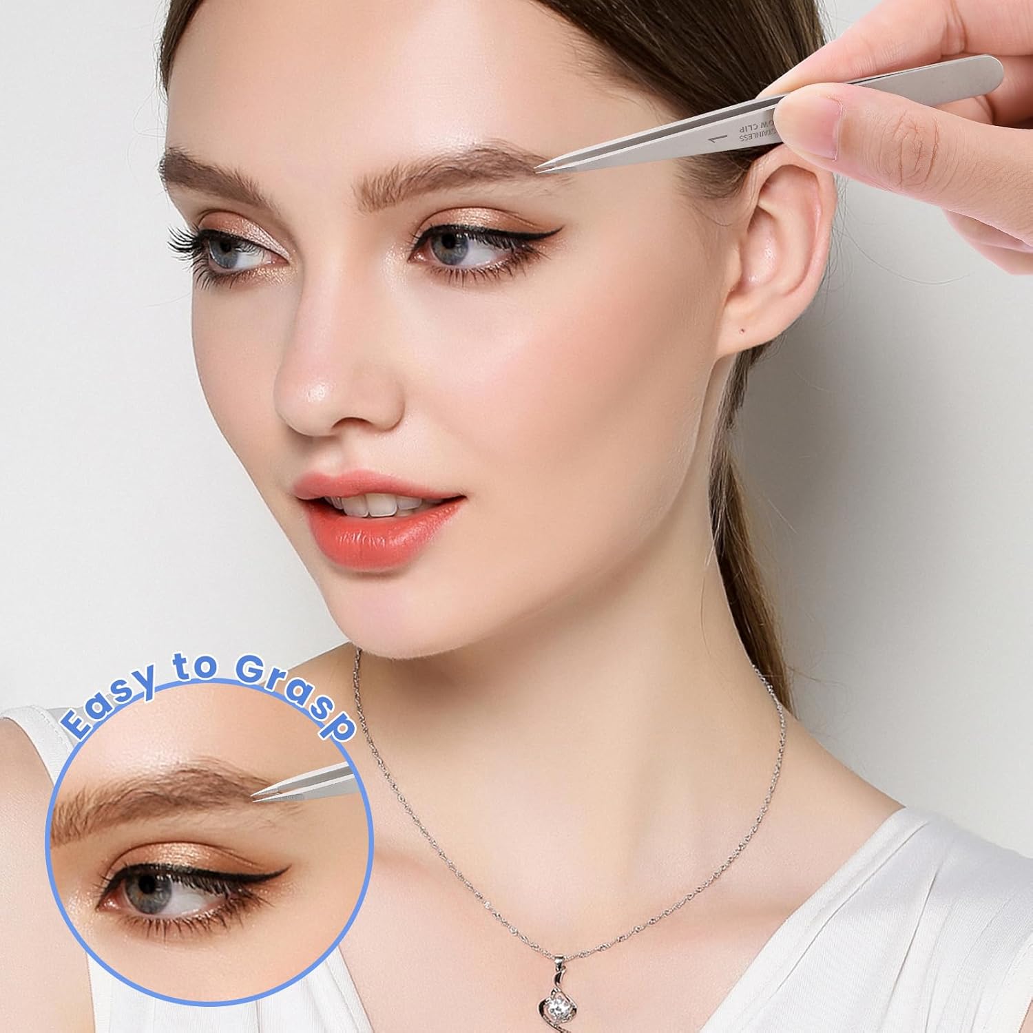- 【𝗧𝘄𝗲𝗲𝘇𝗲𝗿𝘀】25-degree angle, used to shape the eyebrows and modify the delicate contours of the face. Perfect tension and tip alignment. Made of hardened, rust-proof stainless steel, no sanding is required