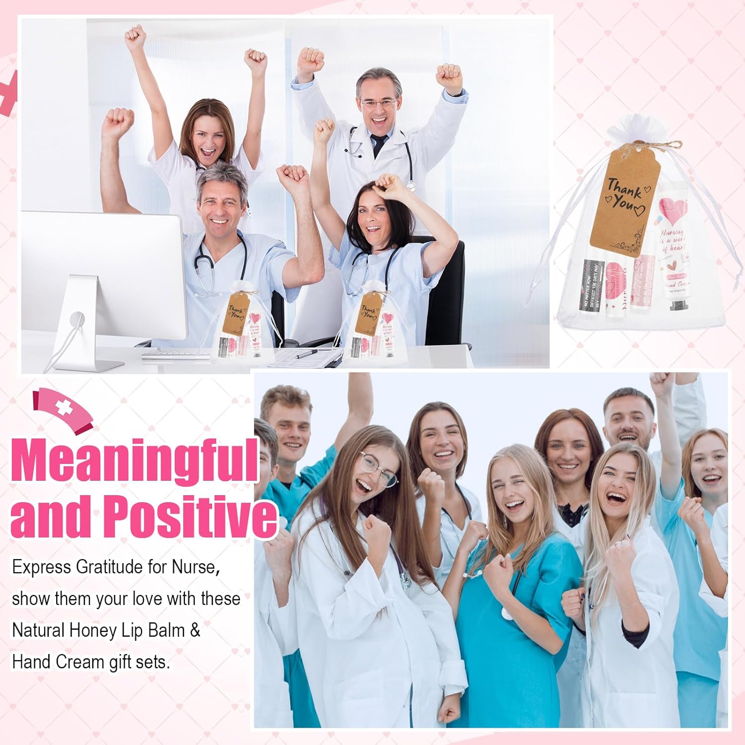 - Sufficient Quantity: you will receive 24 sets of nurse appreciation gifts, including 24 pieces of lip balms, 24 pieces of hand cream, 24 pieces of white organza bags, 24 pieces of thank you tags, 24 pieces of jute, totally 120 pieces, sufficient for you to send to your nurses