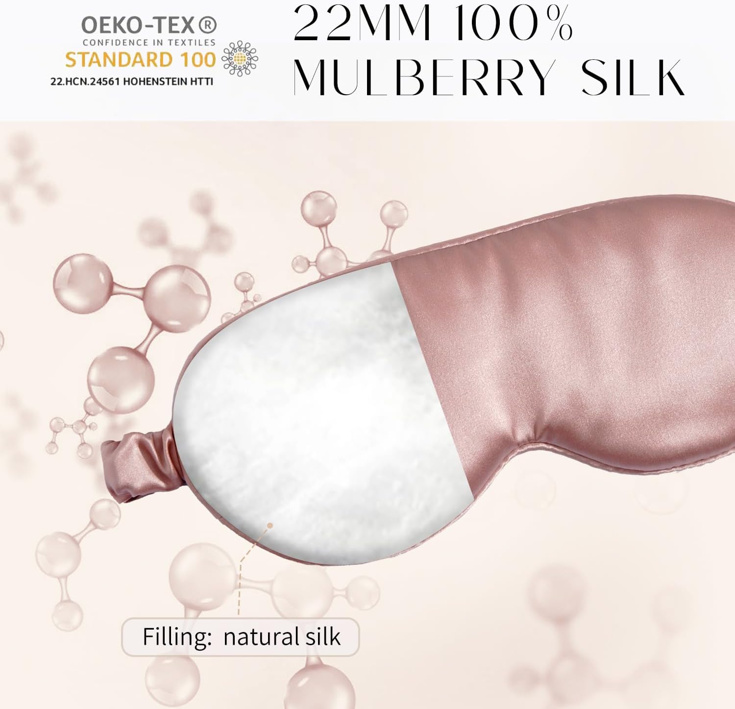 - 【LUXURY 3D SILK SLEEP MASK】Our exquisite 3D silk eye mask is designed for comfort. It is made of 22 momme mulberry silk on both sides, filled with 100% silk instead of satin, providing a luxurious and skin friendly touch. Experience the natural happiness of silkworms and enjoy the most peaceful sleep.