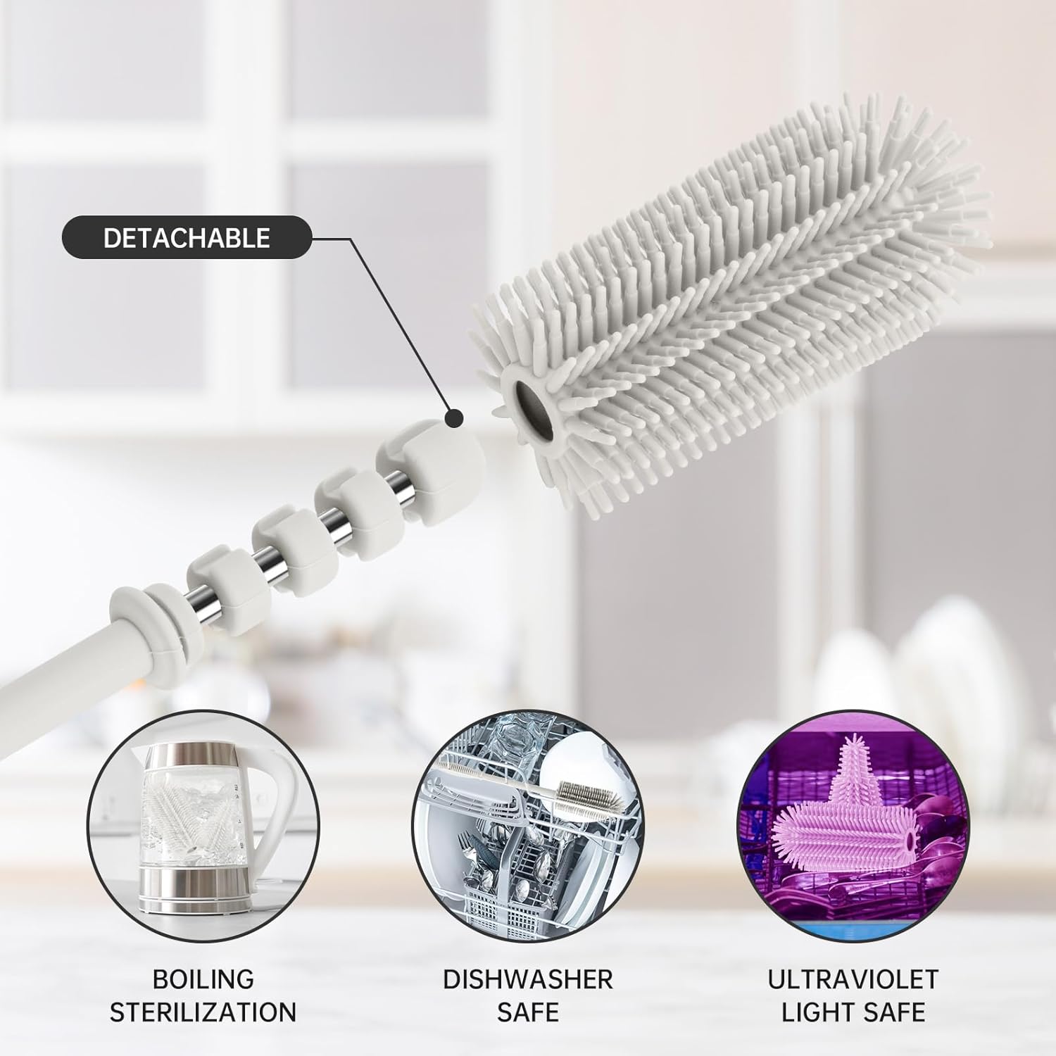 Baby Bottle Brush and Straw Cleaner Brush Set, Extra Long Double-Ended Soft Silicone Brush Cleaner for Baby Bottles, Water Bottles, Cups, Breast Pumps, Detachable & Hangable