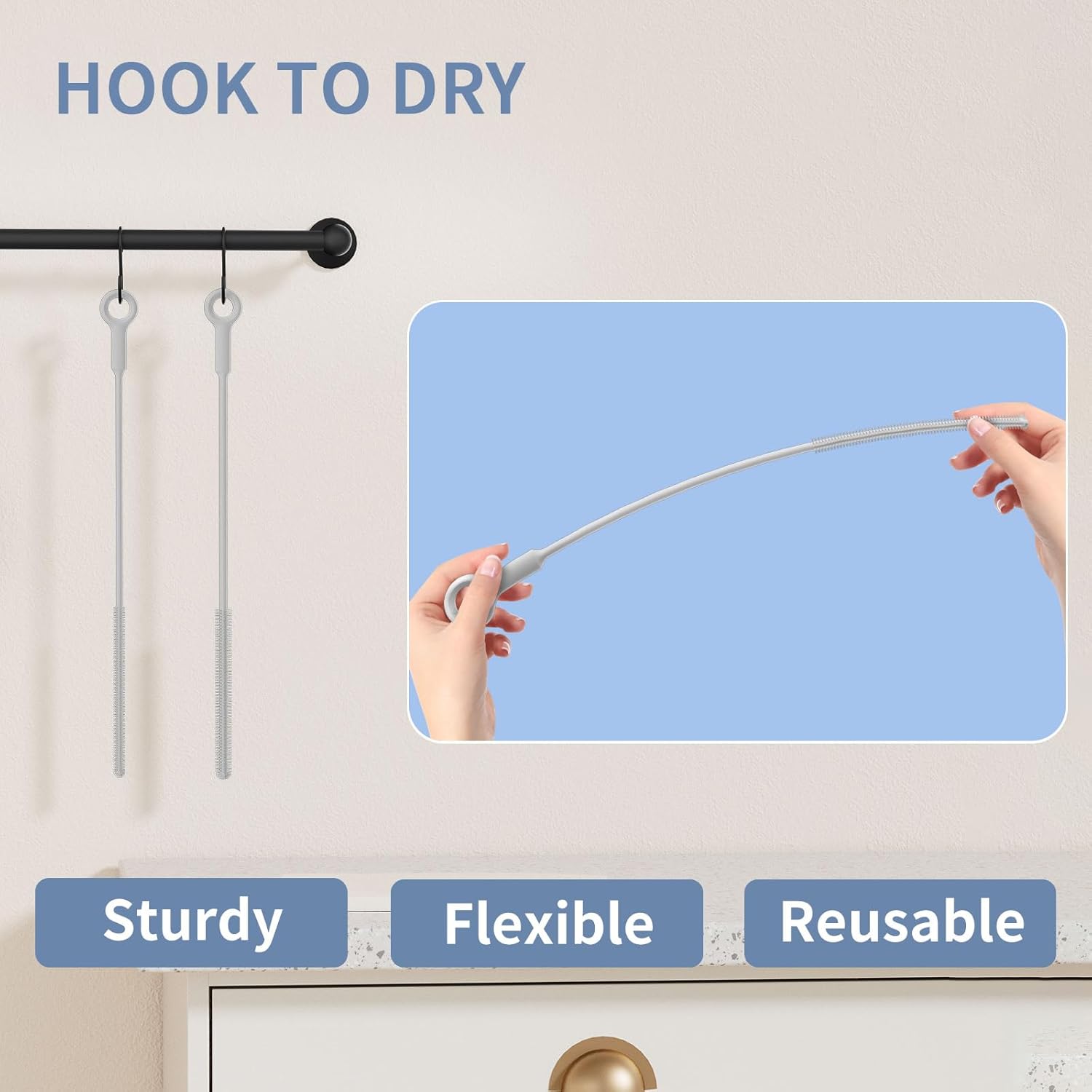 - โจ ๐๐๐ฌ๐ฒ ๐ญ๐จ ๐๐ฅ๐๐๐ง & ๐๐ซ๐ฒ: Straw cleaner brush is made of food-grade silicone, BPA-free, safe and odorless, dishwasher safe, hand washable, high temperature steaming, silicone is easy to clean and dry, making it more hygienic
