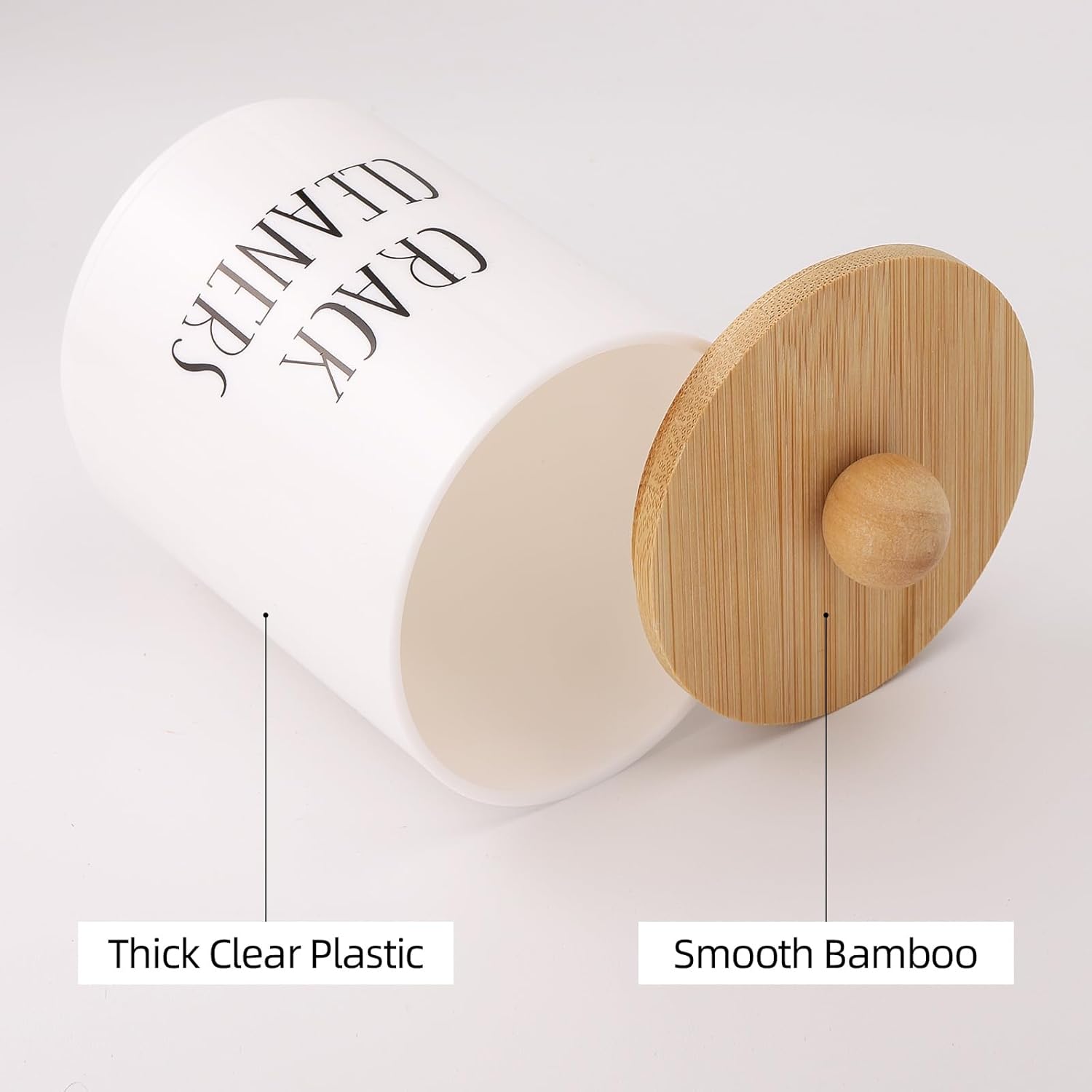 - Each cotton ball dispenser has a natural bamboo lid which is healthy, environmentally friendly and keeps from dust