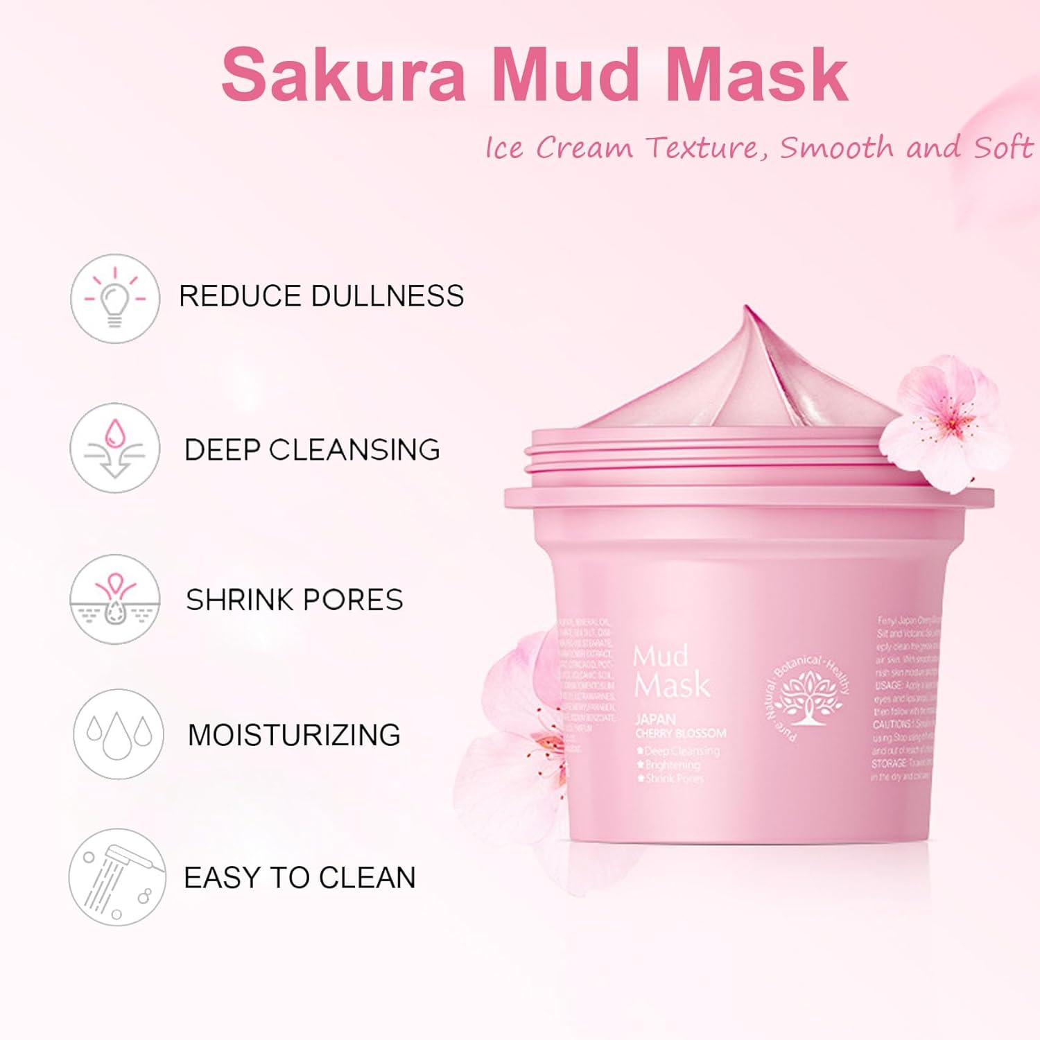 - [Sakura Skin Care Set]: Our face care set includes 1* sakura cream, 1* sakura cleanser, 1* sakura eye cream, 1* sakura serum, 1* sakura mud mask, 5pcs face routine set can replenish dry skin with water, reduce visible pores, gentle exfoliation