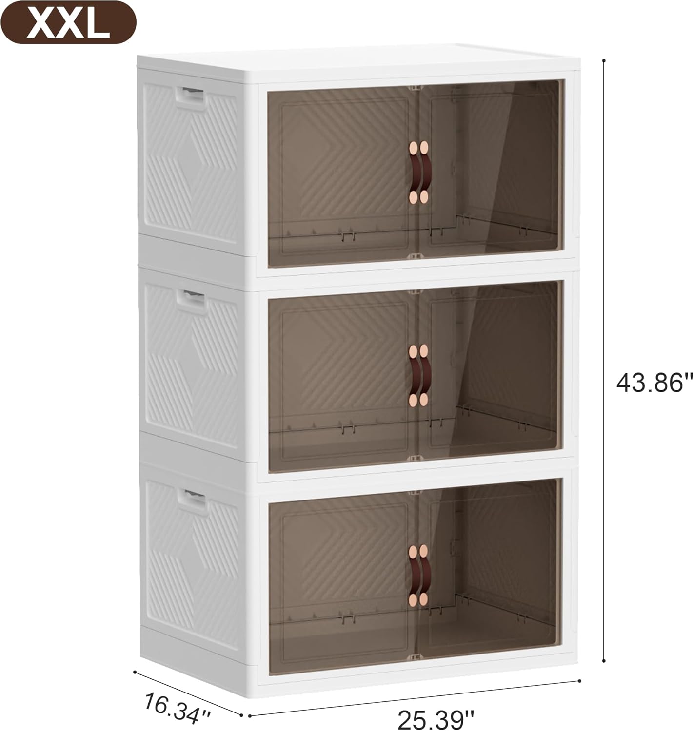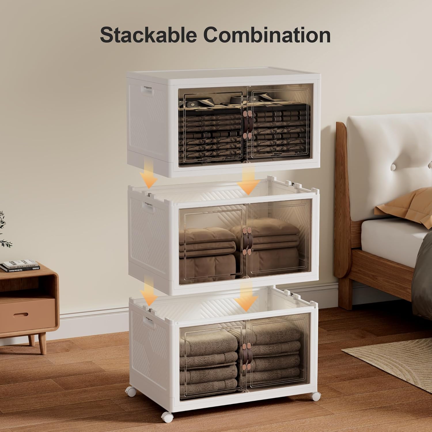 JOYMOOP Folding Storage Bins Organizer, 252 Quart Collapsible Storage Boxes with Wheels and Door, Stackble Plastic Storage Container for Clothing, Books and Sundries (XXL, 21 Gal Per, 3 Tiers)