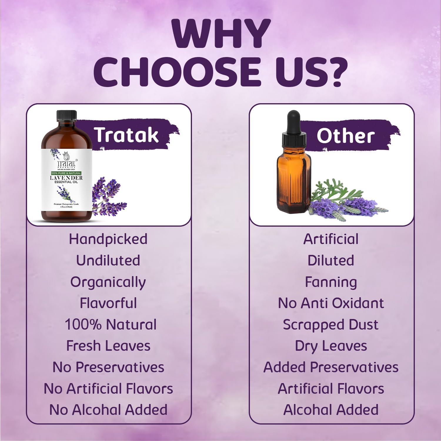- PURE BLISS FROM NATURE: Immerse yourself in the unparalleled purity of Tratak Lavender Essential Oils, meticulously sourced and extracted solely from premium botanicals, untainted by any additives or fillers.
