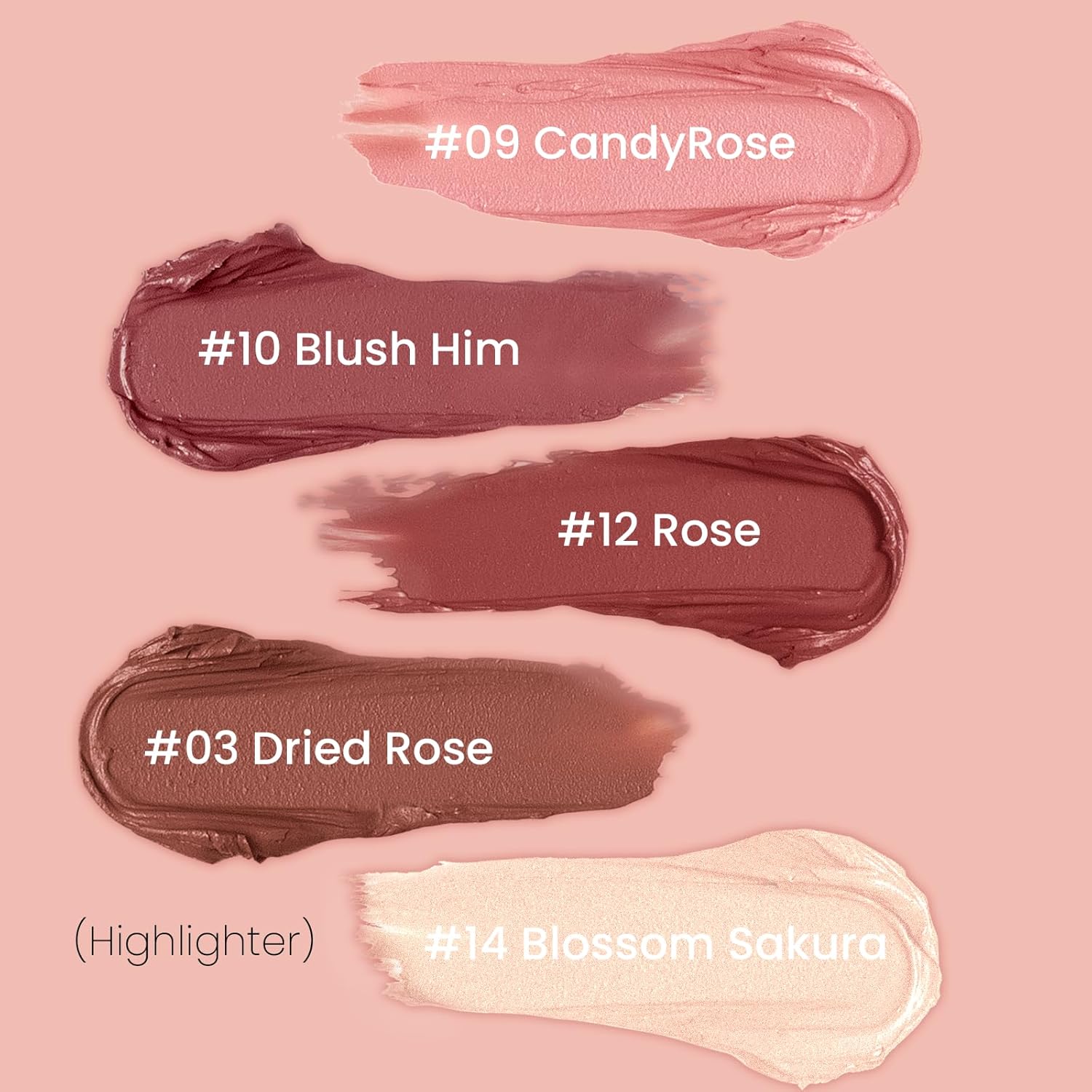 - 【A Spectrum of Affection】Choose from five enchanting shades: Candy Rose, Blush Him, Dried Rose, Rose, and Blossom Sakura. Each color is crafted to celebrate the beauty of love, offering a hue for every mood and occasion. With a sweep of our blush stick, you can add a touch of sweetness to your daily routine or a burst of romance to special events.