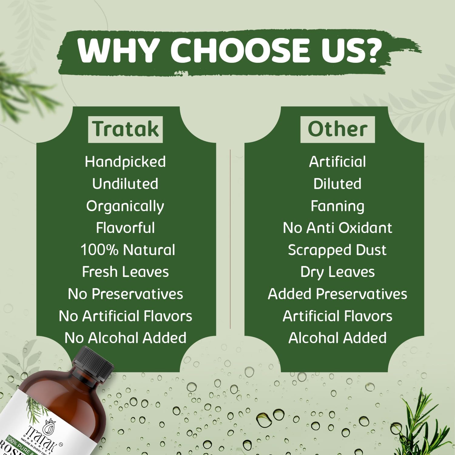 - PURE BLISS FROM NATURE: Immerse yourself in the unparalleled purity of Tratak Rosemary Essential Oils, meticulously sourced and extracted solely from premium botanicals, untainted by any additives or fillers.