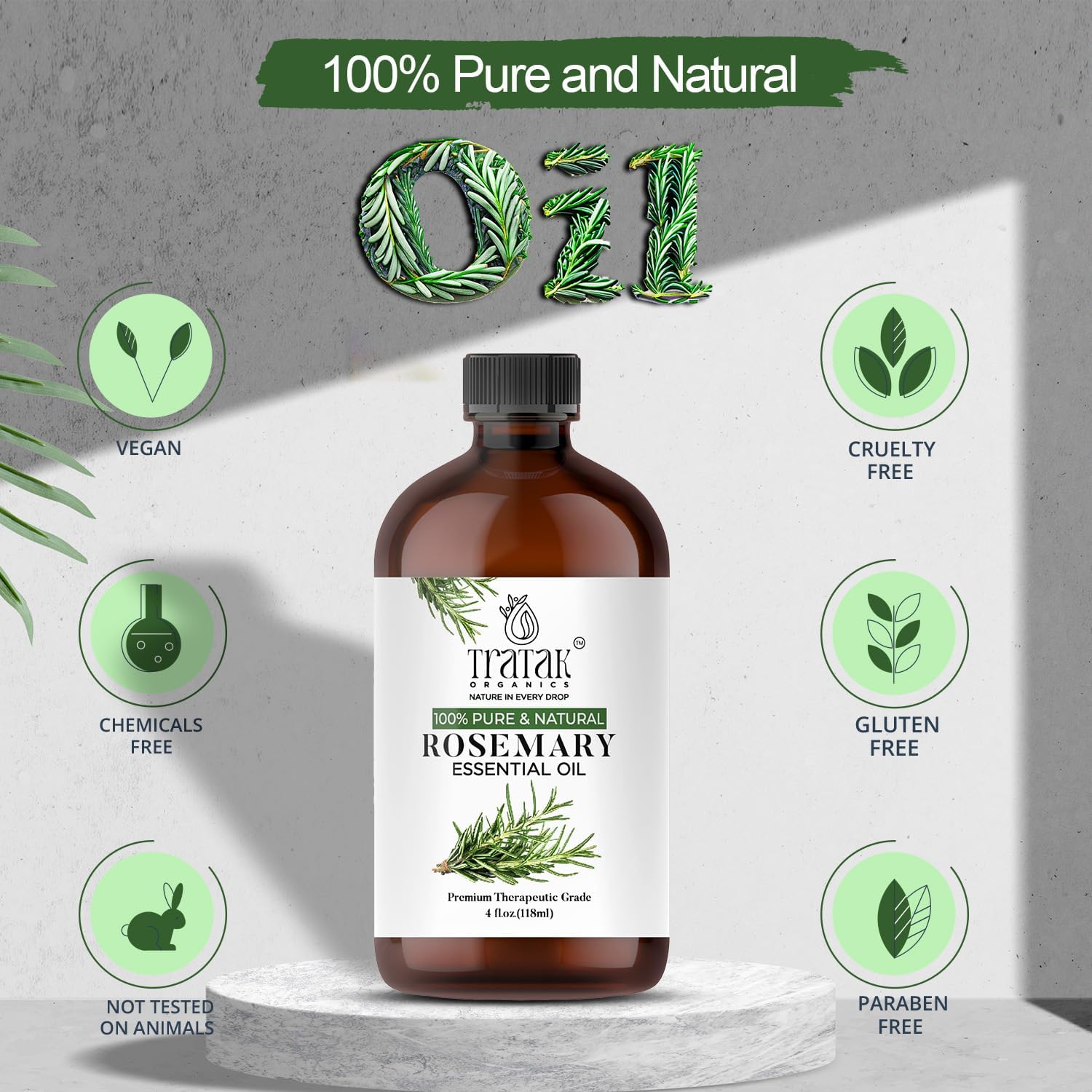 - PACKAGE INCLUDES: Pack of 1 Tratak Rosemary Essential Oil with dropper, Net Weight: 4 Fl Oz