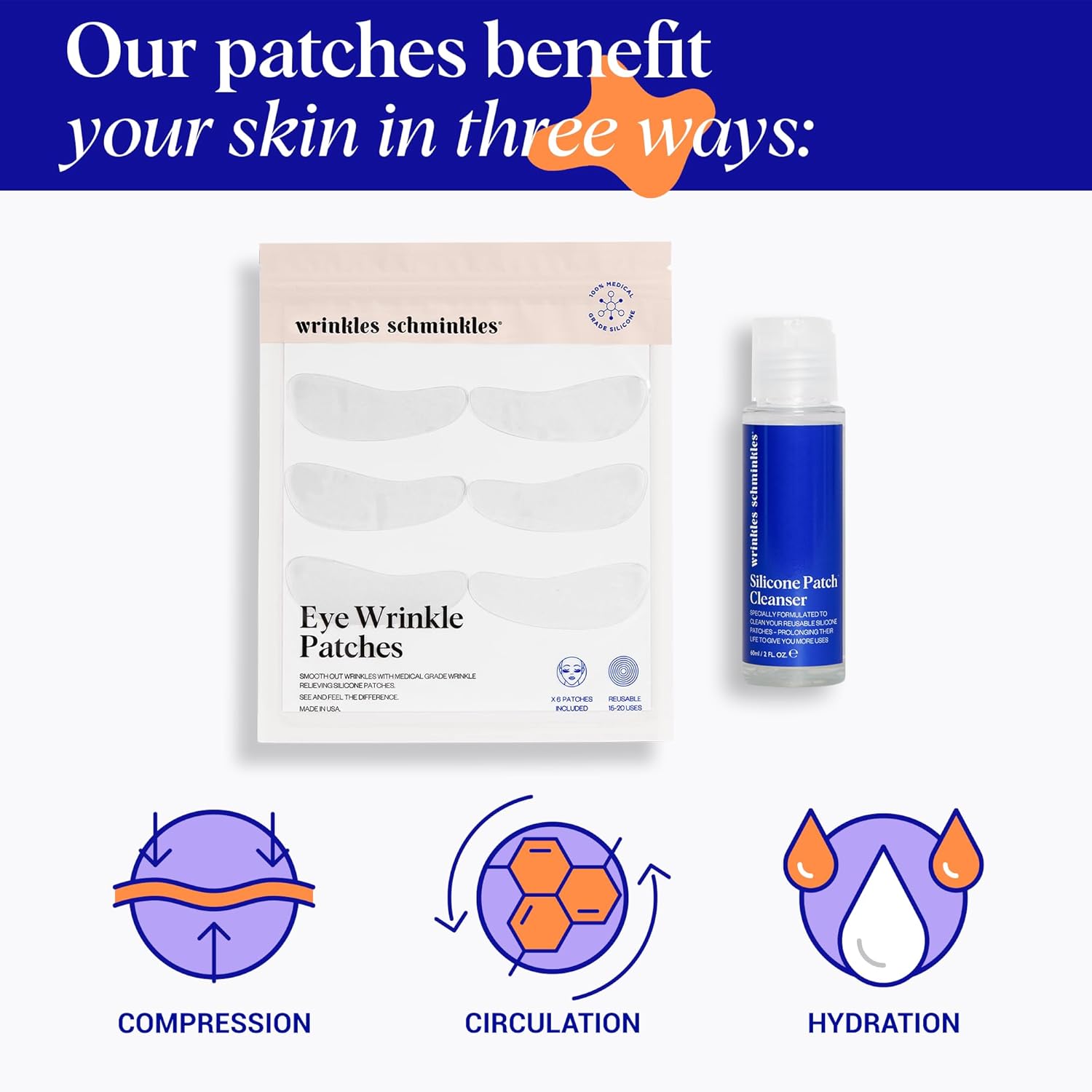 - BUNDLE USAGE: This beginner bundle includes 3 pairs of our reusable medical-grade silicone under eye wrinkle patches along with a 2 oz Patch Cleanser. Ideal for combating under-eye wrinkles and fine lines, this bundle offers a comprehensive solution for rejuvenating the delicate under-eye area.