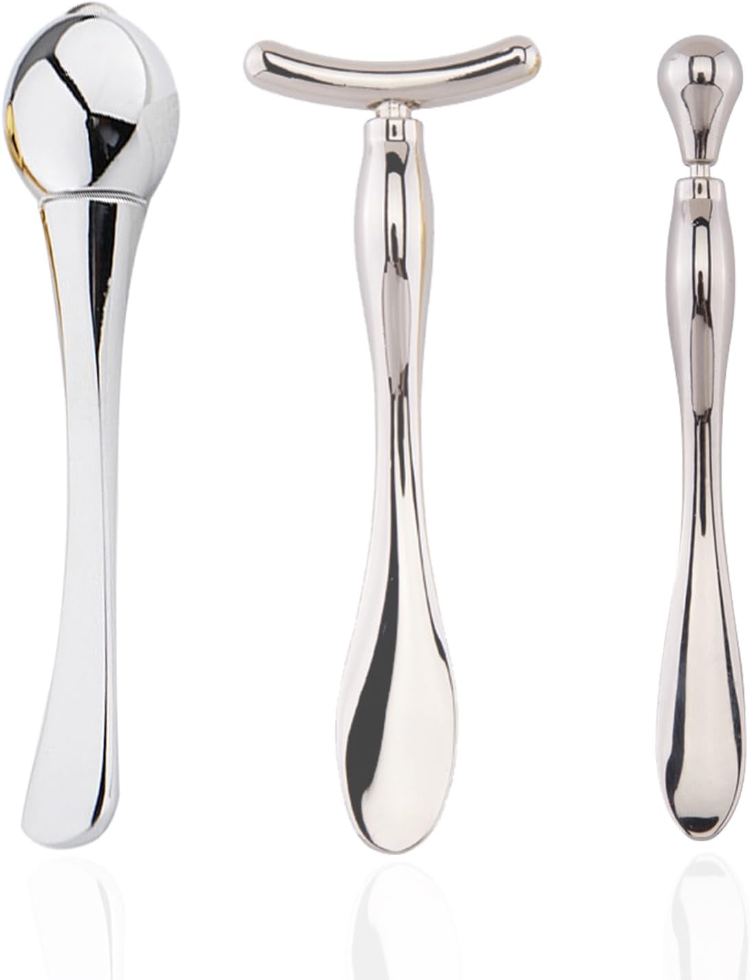 BetterJonny 3Pcs Metal Eye Cream Applicator Roller Wand Stick, Cosmetics Spoon Eye Cream Massager Wand Girls Women Facial Massager for Fatigue Relief Reduce Puffiness (Silver)