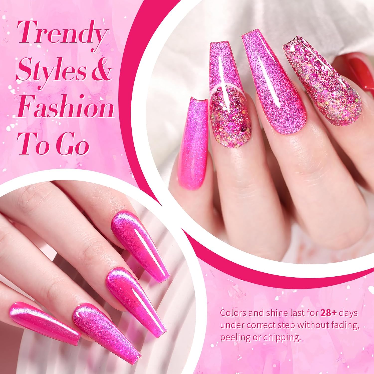 - EASY APPLICATION AND GOOD TENACITY: The series of nude pink gel nail polish set is long lasting for 21+ days with perfect shine under proper application - With base gel top coat under the full application process.High durability and intense pigmentation makes it stay last longer and brings you brilliant shine finish.