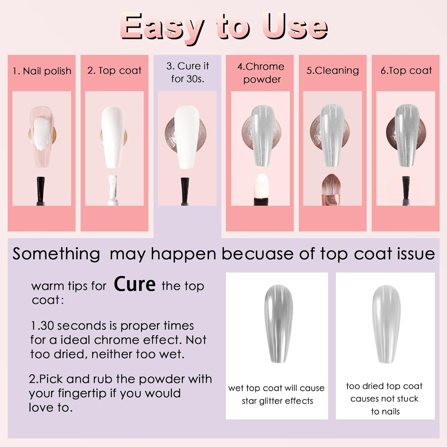 - Wide Usage: Allstarry Chrome Nail Powder Set is with 2 colors, which can perfectly match with chameleon flakes, nail charms, french manicure, 3D shell nails and etc, meeting your needs for different works. What’s more, the chrome powder for nails can also be applied on UV gel nails, acrylic nails, natural nails, and it can be mixed into nail gel polish or chrome nail polish for its solvent resistance.