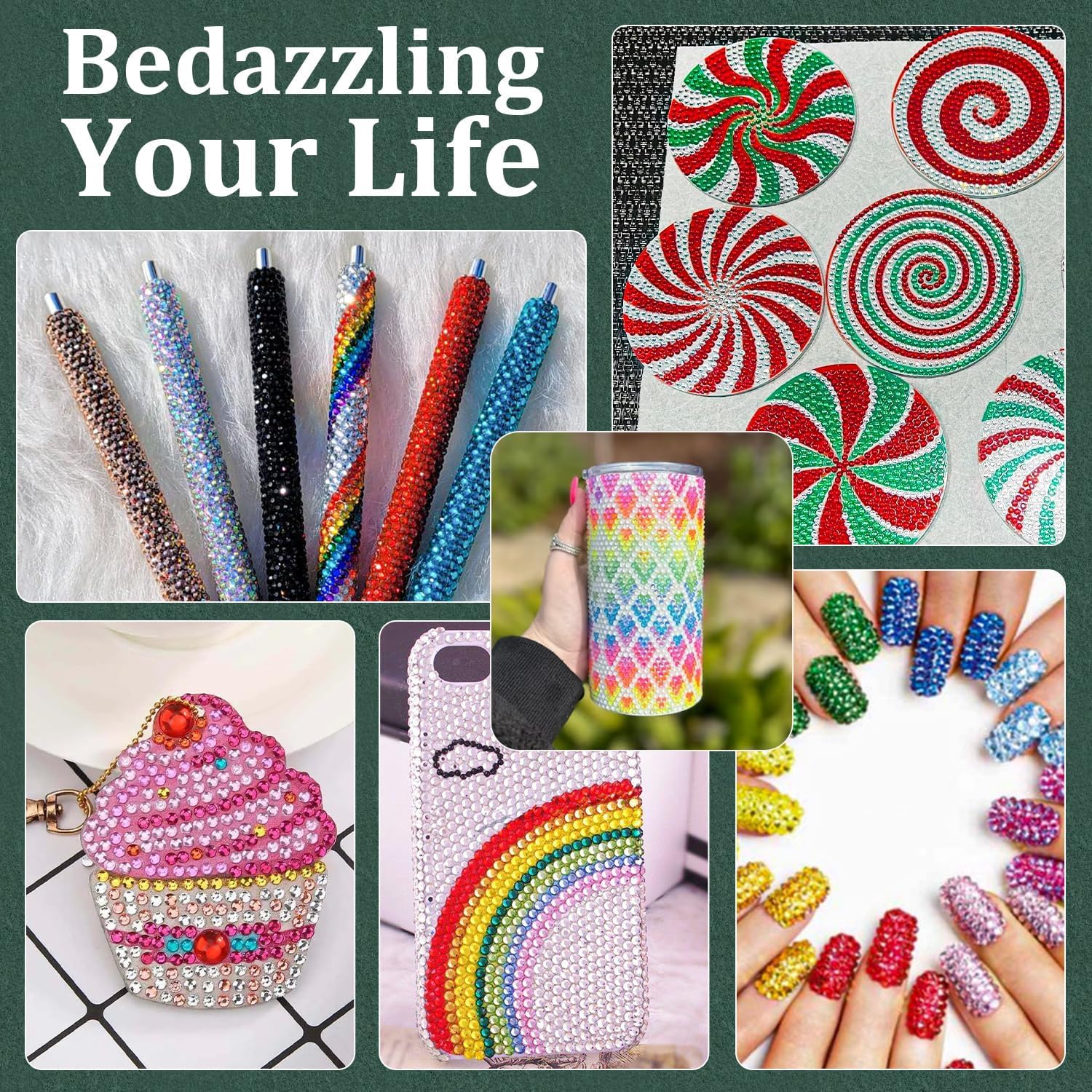 - WIDE APPLICATION -- These sparkling iridescent resin crystals are perfect for creating dazzling looks. Use them for bedazzling DIY crafts like shoes, tumblers, mugs, bottles, phone cases, popsockets, scrapbooks, photo frames, diamond paintings, greeting cards, bags, glasses, guitars, keychains, hats, masks, hair clips, bracelets, wristbands, clothing, wedding dresses, and more. Apply it to what you want to bling!