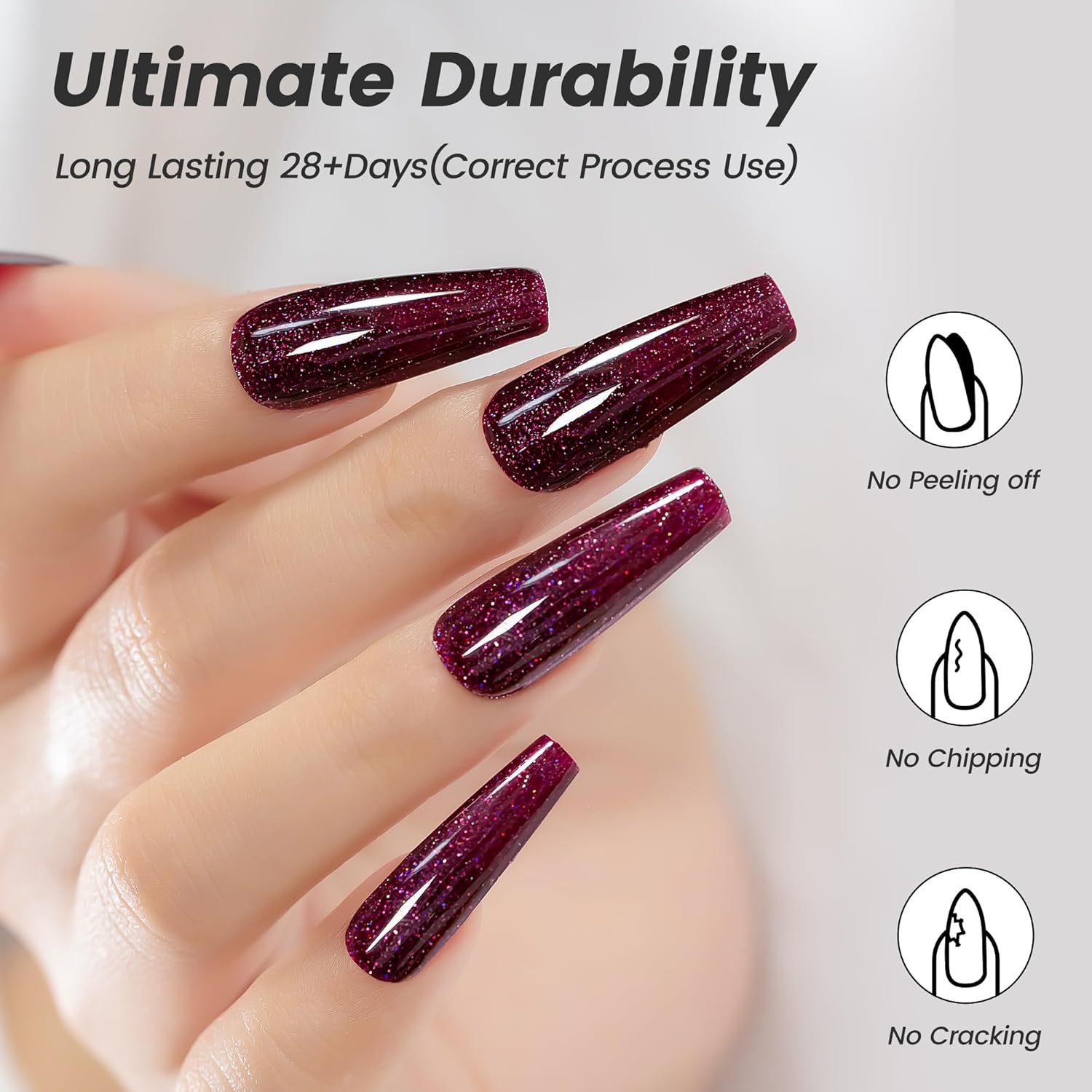 YTD Likomey Gel Nail Polish,15ml Colorful Wine Purple Glitter Fall Winter Dark Plum Shimmer Shiny Sparkly Salon Home DIY Manicure UV Color Varnish,SF402
