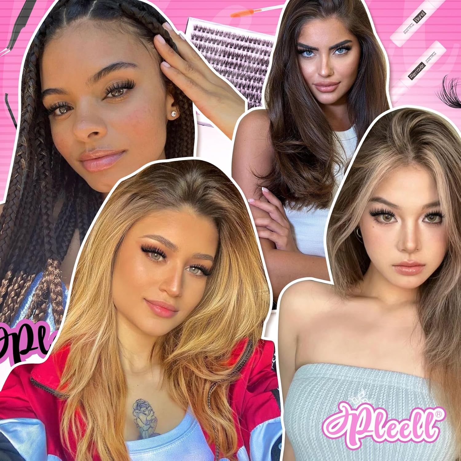 - 10-18MM cost-effective wispy lash extension kit - Pleell’s eyelash clusters kit contains a cluster eyelashes, a lash bond and remover, a lash tweezers and two eyelash brushes. Let you enjoy eyelash extension at home just like in a beauty salon.