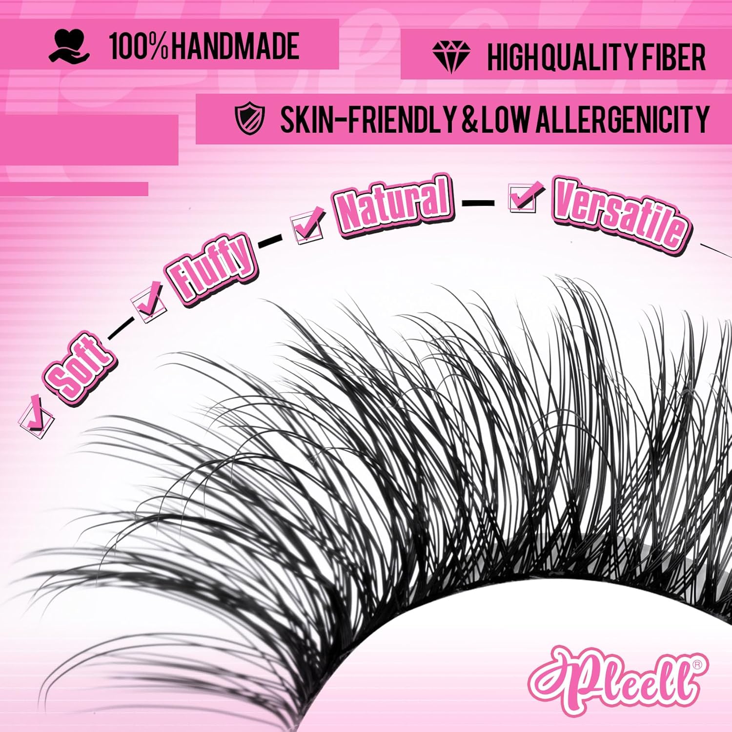 - Comfortable D curl lash extension kit - Pleell’s cluster lashes kit are made of professional-quality fibers, handmade. The premium eyelash extension kit provide a 6D voluminous effect, are lightweight, and very soft, offering you a whole new DIY eyelashes extension kit experience.