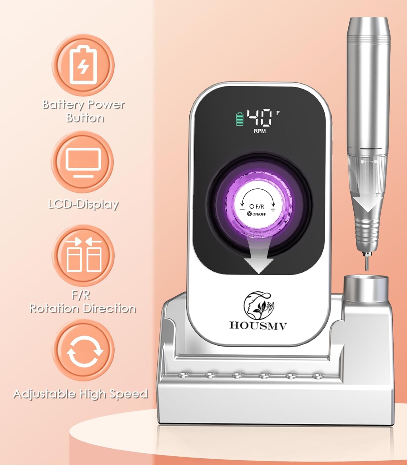 - ๐๐๐ฌ๐ฒ ๐๐ ๐๐๐: The twist-lock system makes changing nail drill bits extremely simple. The cordless electric nail drill also supports forward/reverse direction, allowing easy control for both left-handed and right-handed users, providing a quiet and comfortable nail care experience.