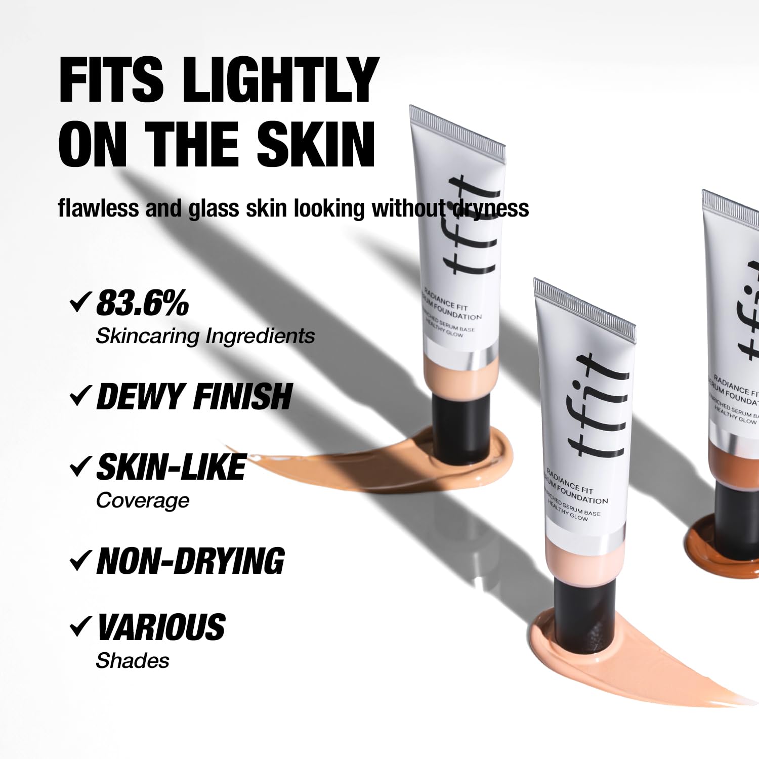 - 【All-Day Radiant Glass Skin】The tfit foundation with our high-radiance oil serum,Evens skin tone, lightweight foundation, blurs the appearance of dark circles and other less-than-perfect areas,Achieve a luminous, flawless matte foundation. Enjoy lasting brightness and that coveted glass skin look from morning till night