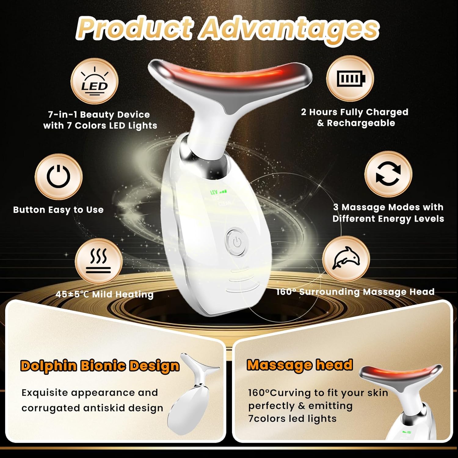 Portable Facial Massager, Multifunctional Facial Skin Care Tools, Face and Neck Massager, Face Sculpting Tool, 7 Color Led Face and Neck Beauty Device for Home Use