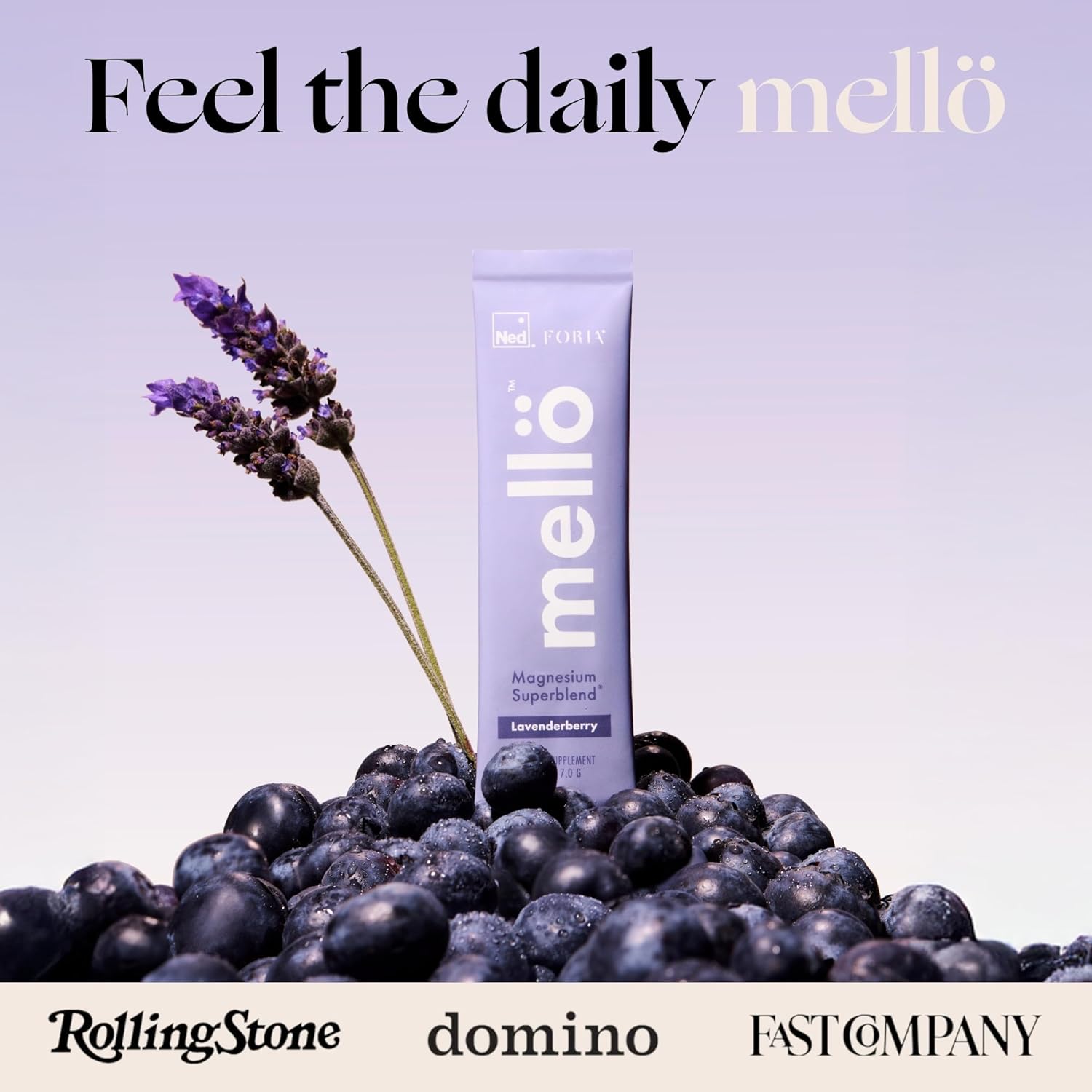 mellö Magnesium Supplement Superblend Powder - Magnesium Glycinate with L-Theanine, GABA, and Trace Minerals - Supports Sleep, Relaxation, and Balanced Energy - Lavenderberry Flavor, 10-Pack, Singles