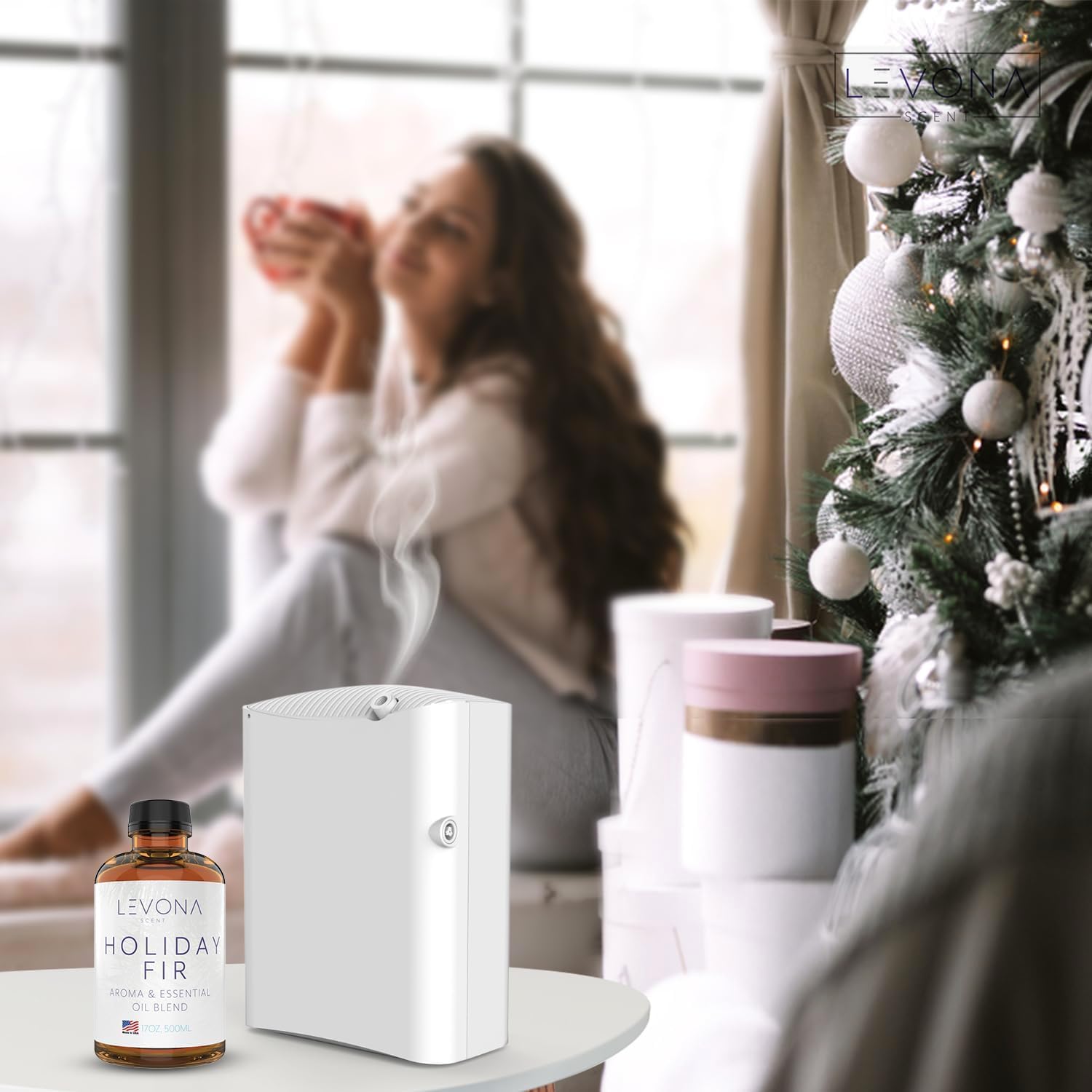 Levona Scent Essential Oil - Fresh Aroma for Home, Office, Hotel & Spa, Perfect in Humidifiers and Diffusers, Luxury Fragrance, with Sandalwood, Amber, Winter Fir Notes - 500ml/ 17 fl oz, Holiday Fir