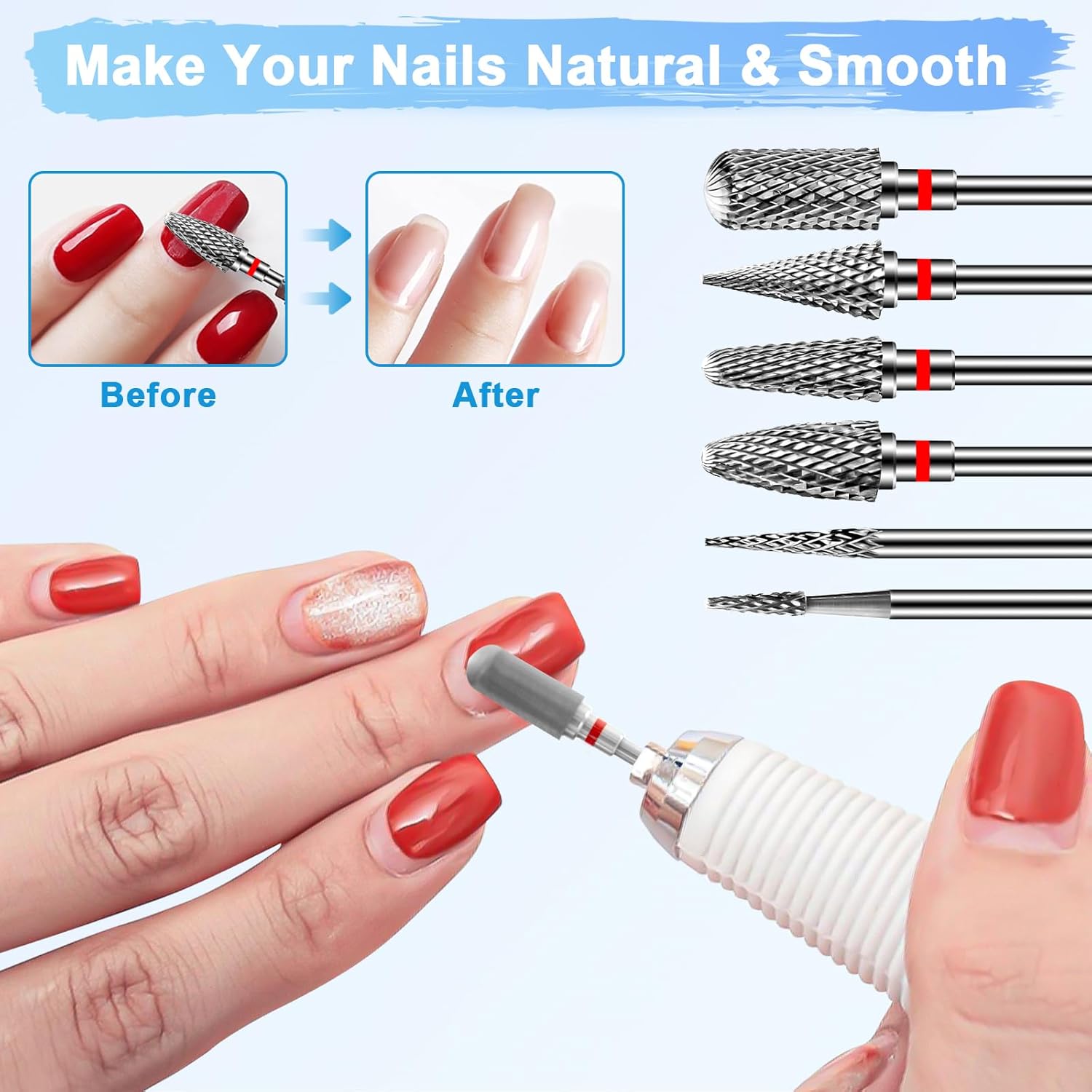 - 【Safety and Easy to Clean Drill Bits】Individual bit is included in a transparent box, so you can take it with you wherever you go. Nail brush bit can easily clean gel dust on the drill, rinse or brush the dust and powder on the bit after each use, then you can continue to use, Protect your skin from being harmed with superior craftsmanship and well-tested design