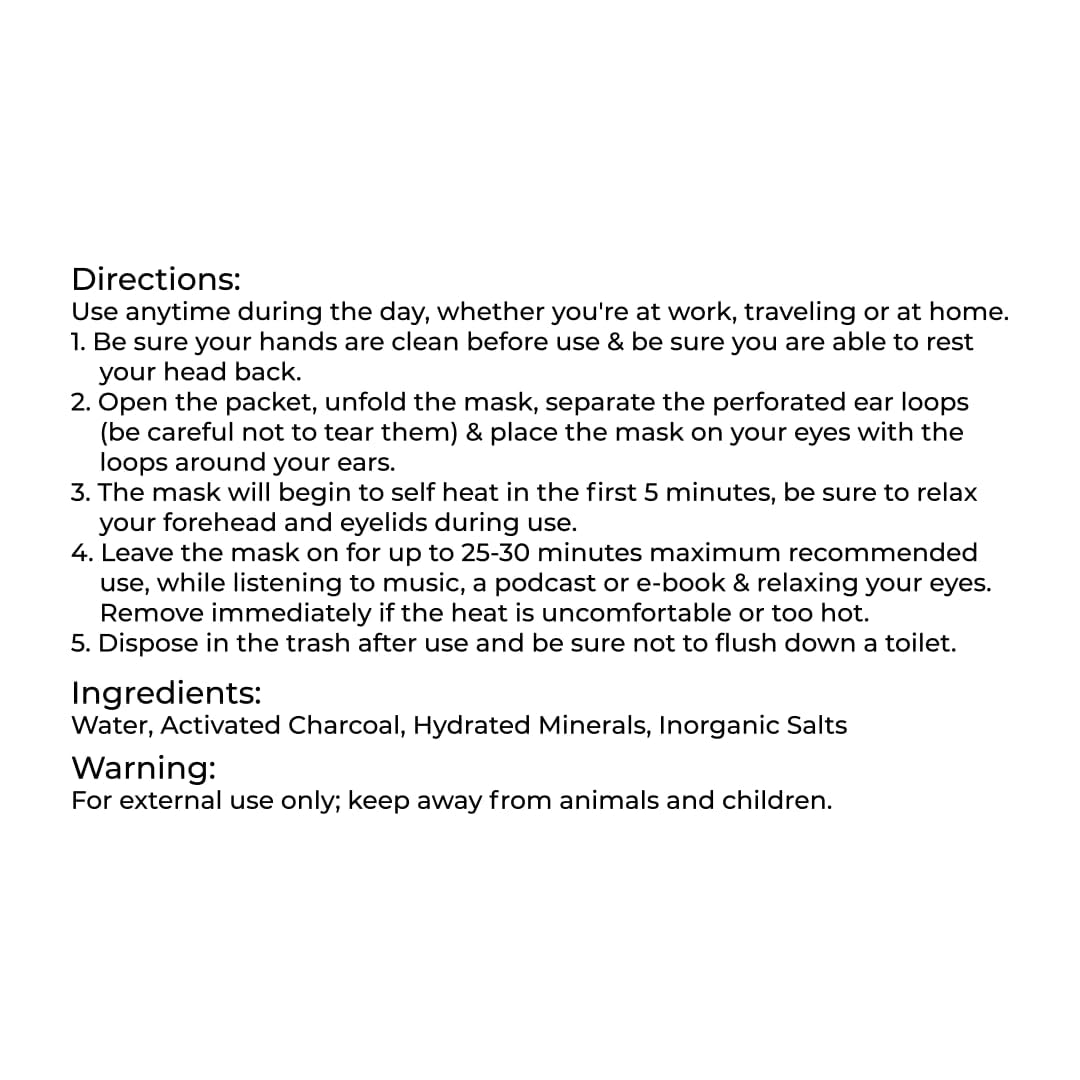 - ππππ ππππππ πππ πππππ: No additional heat source needed, just open the elastic loops on the back and put it on, warm eye compress mask will auto start heating. All you need to do is close your eyes and enjoy our eye heat mask for instant Sensitive eyes relief without going to the spa.