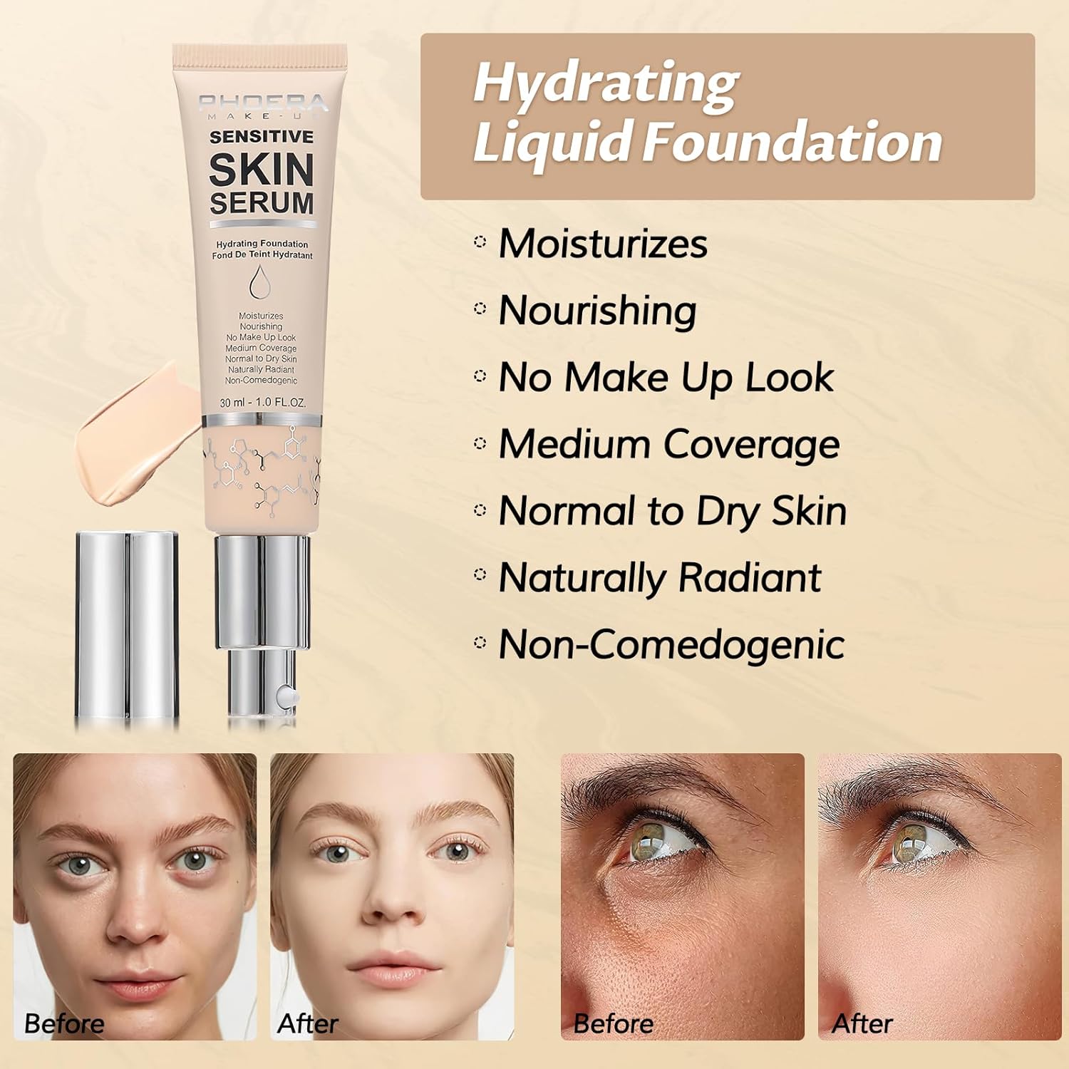 - 【Also Great For Sensitive Skin 】-This new serum foundation is clean, cruelty-free . The lightweight, oil-free formula is non-comedogenic so it won't clog pores and is friendly to sensitive skin.
