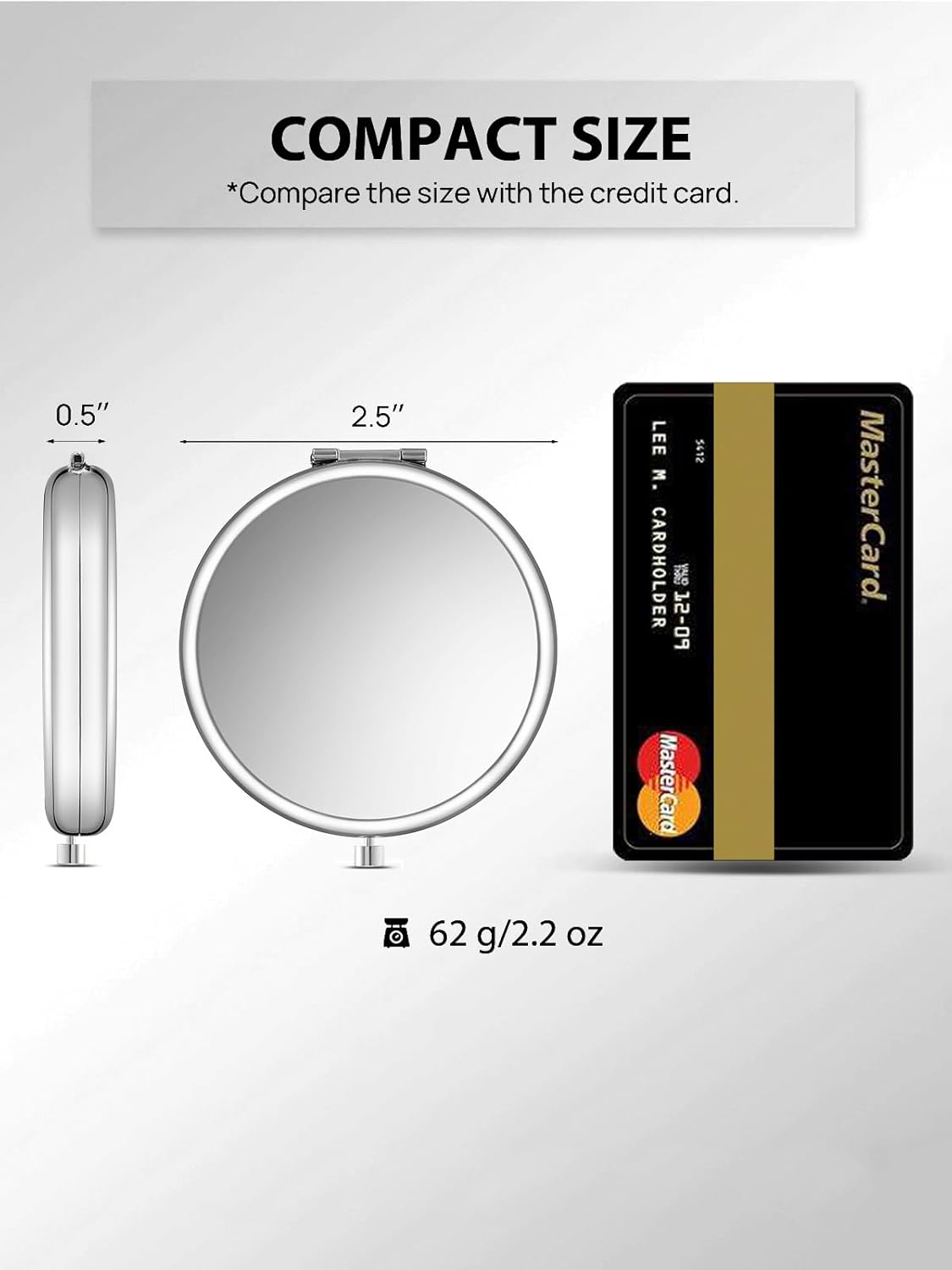 - PREMIUM METAL SHELL: High-quality metal mini mirror with a sturdy frame, clear mirror, and push-button switch. Sturdy, durable, and easy to open.The smooth surface work well for quick makeup