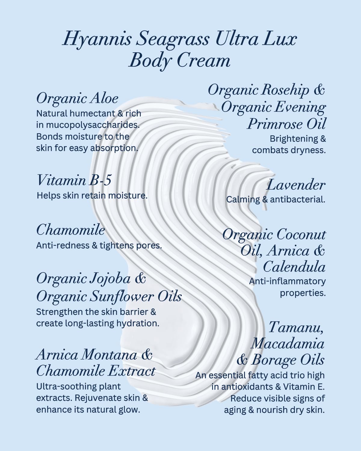 - Luxurious 4 oz Ultra Lux Body Cream: Immerse yourself in bliss with our nutrient-dense body cream that hydrates and nourishes, leaving your skin irresistibly smooth and supple.
